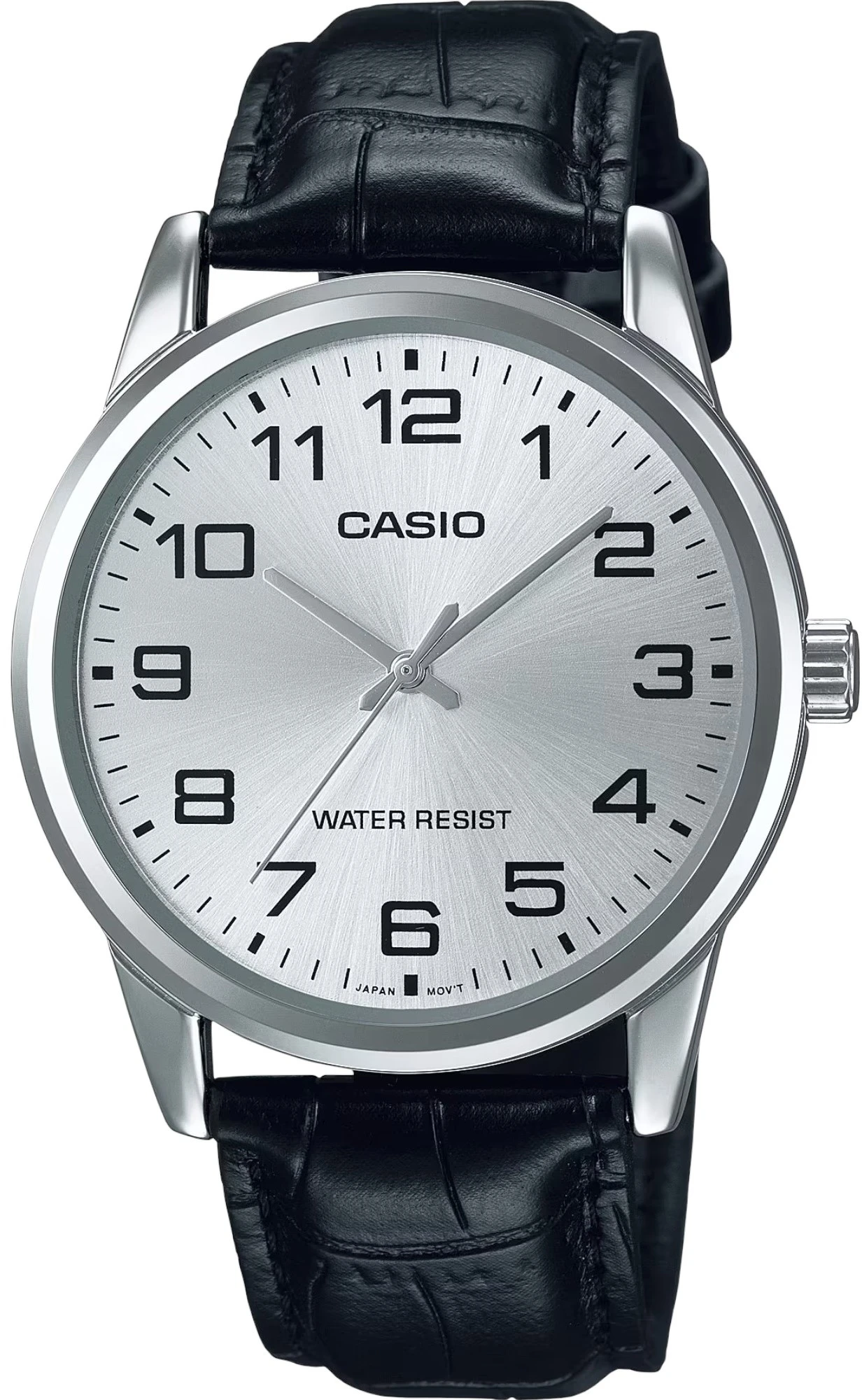 Мужские наручные часы Casio Collection MTP-V001L-7B. Точный кварцевый механизм с аналоговой индикацией. В отличие от механических часов, не требуют завода и работают от батареи, показывая отклонение всего несколько секунд в месяц. Ремешок изготовлен из кожи. Гибкость такого ремешка позволяет точно регулировать посадку часов на руке. Аккумулятор обеспечивает часы достаточным питанием приблизительно на 3 года. Корпус изготовлен из высококачественной часовой латуни с высокими антикоррозийными свойствами. Прочное, устойчивое к царапинам минеральное стекло защищает часы от повреждений. Часы являются водонепроницаемыми до 3 Бар. Цвет корпуса: Серебристый. Цвет циферблата: Серебристый. Высота (с ушками): 45 мм. Толщина: 8 мм. Гарантия: 2 года. Другие наименования модели: MTP-V001L-7BUDF.