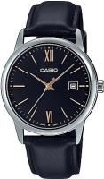 Мужские наручные часы Casio Collection MTP-V002L-1B3. Точный кварцевый механизм с аналоговой индикацией. Корпус изготовлен из высококачественной нержавеющей стали 316L с высокими антикоррозийными свойствами. На циферблате отображается текущее число месяца. Аккумулятор обеспечивает часы достаточным питанием приблизительно на 3 года. Ремешок изготовлен из кожи. Прочное, устойчивое к царапинам минеральное стекло защищает часы от повреждений. Часы являются водонепроницаемыми до 3 Бар. Цвет корпуса: Серебристый. Цвет циферблата: Черный. Ширина (с заводной головкой): 37мм. Толщина: 9мм. Гарантия: 2 года.
