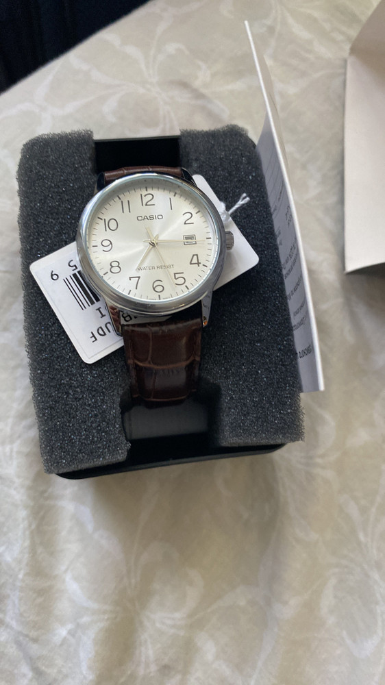 Товар пришёл вовремя. Мужу часы очень понравились. На руке смотрятся хорошо. Самое главное, что и раздражения от них нет. Аккуратные часы.