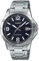 Мужские наручные часы Casio Collection MTP-V004D-1B2. Точный кварцевый механизм с аналоговой индикацией. Корпус изготовлен из высококачественной часовой латуни с высокими антикоррозийными свойствами. На стрелки и отметки нанесен светонакопительный состав, благодаря этому считывать информацию с циферблата возможно и в темноте. На циферблате отображается текущее число месяца. Браслет из нержавеющей стали. Прочное, устойчивое к царапинам минеральное стекло защищает часы от повреждений. Часы являются водонепроницаемыми до 3 Бар. Цвет корпуса: Серебристый. Цвет циферблата: Черный. Ширина (с заводной головкой): 42мм. Толщина: 10мм. Гарантия: 2 года.