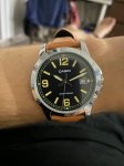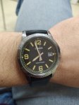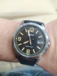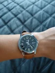 ремешок очень жёсткий и ободрался в первую неделю, был заменён на силиконовый. Черный ремешок этим часам больше идёт, а никак не телесного цвета.