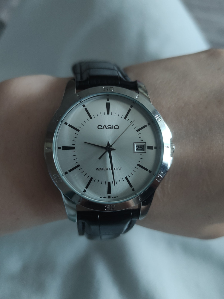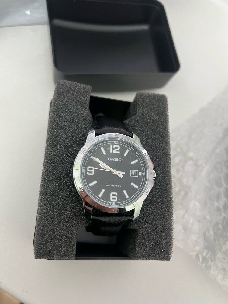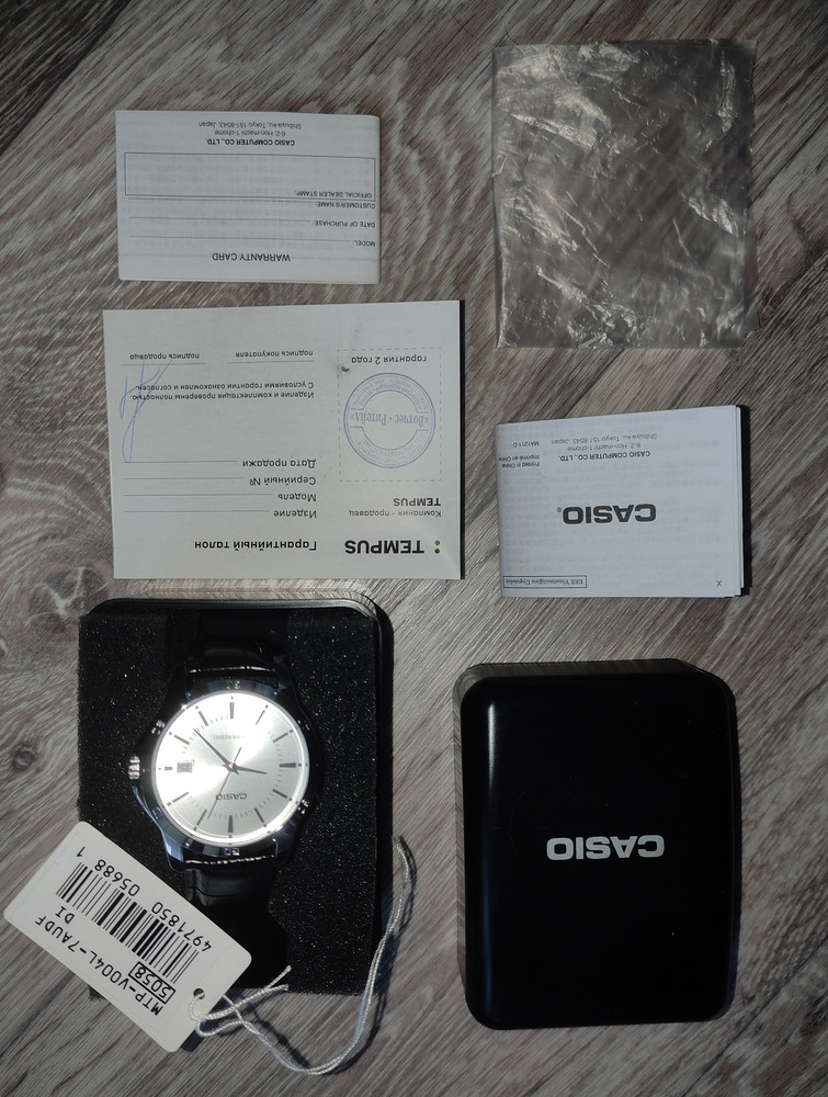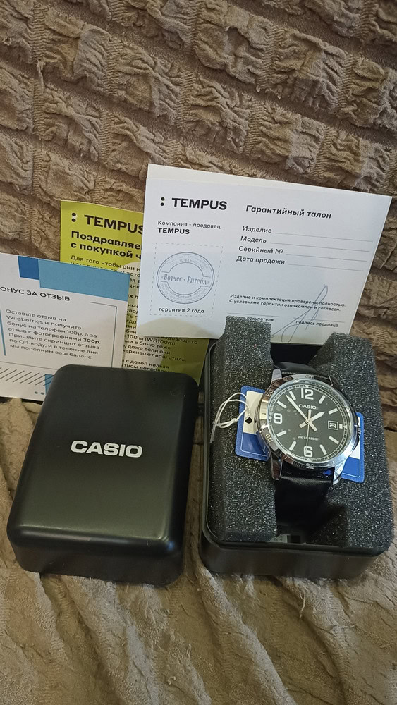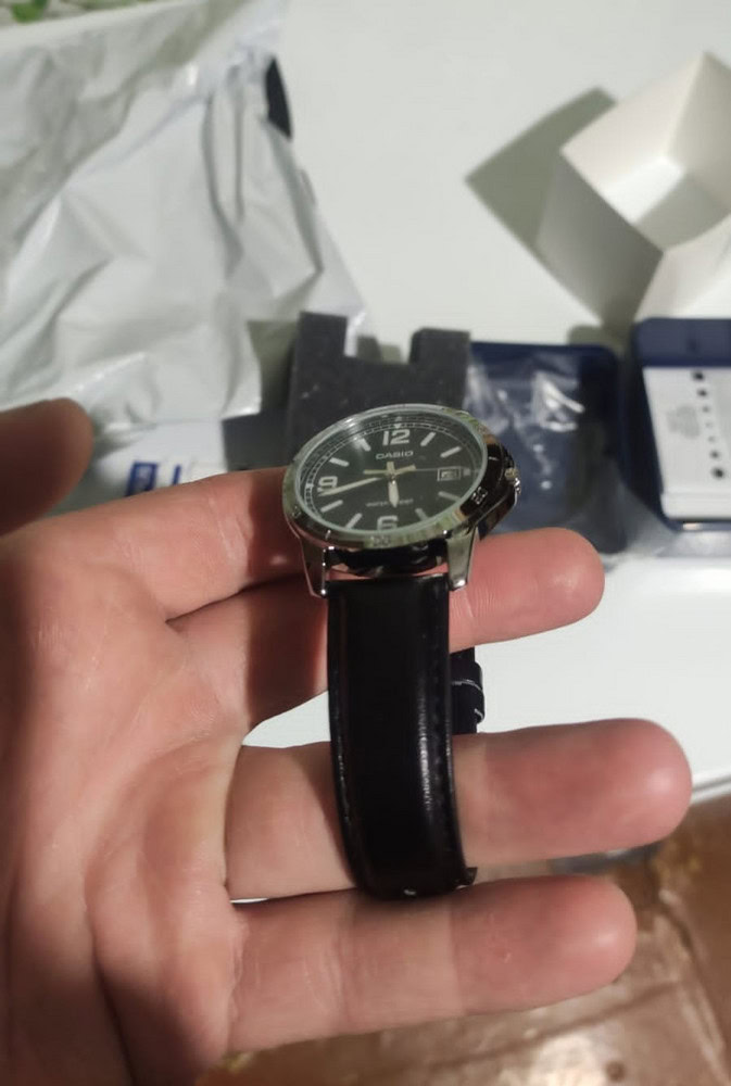 Доставка быстрая. Упаковано было отлично, коробочка целая, ничего не понять и не сломано. Гарантийный талон с печатью, надеюсь не пригодится. Сами часики ходят исправно, стрелки светятся в темноте, циферблат четкий, на фото он в пленочке, тк на подарок. Спасибо большое за качество!