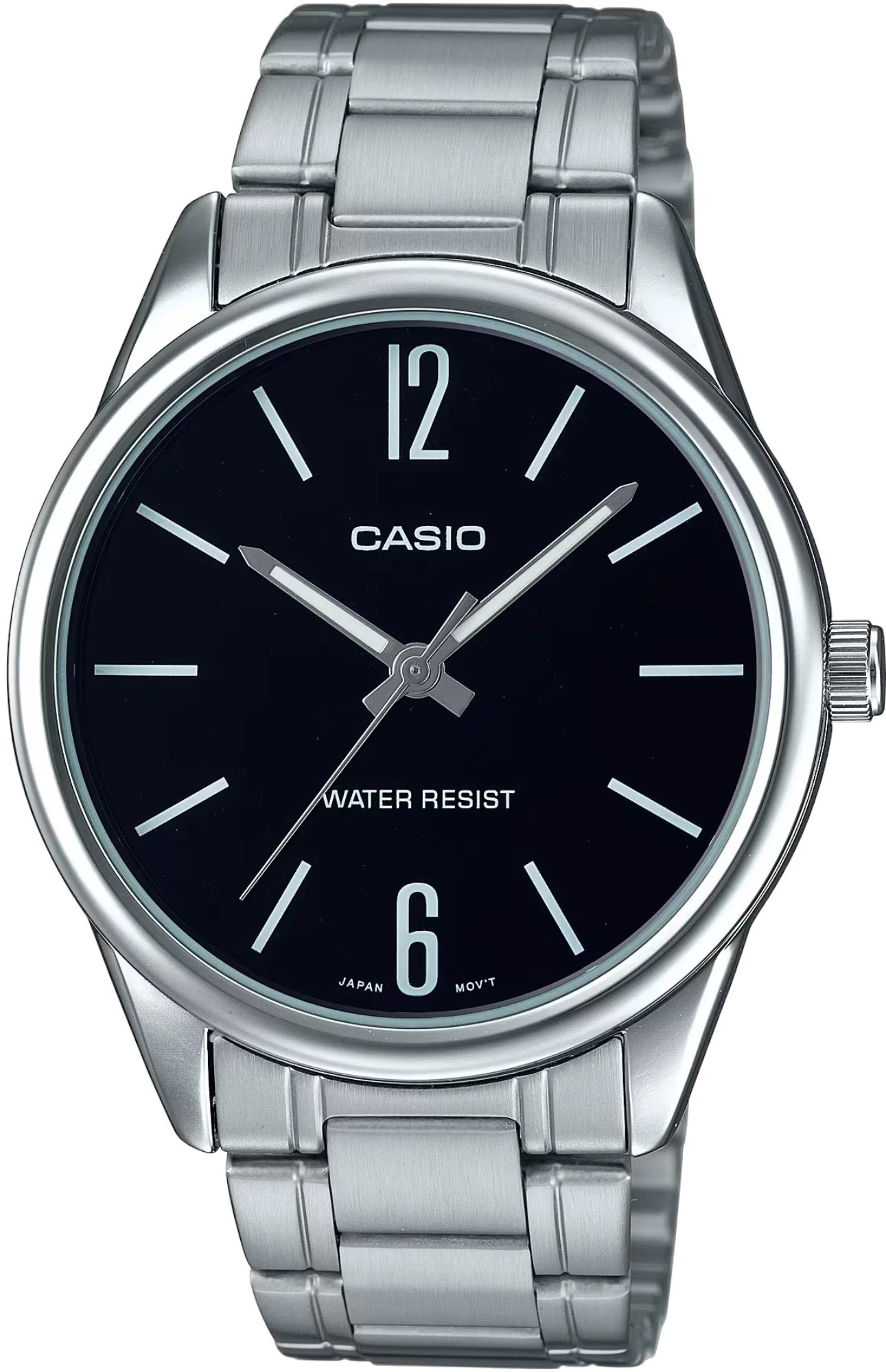Мужские наручные часы Casio Collection MTP-V005D-1B. Точный кварцевый механизм с аналоговой индикацией. В отличие от механических часов, не требуют завода и работают от батареи, показывая отклонение всего несколько секунд в месяц. На стрелки нанесен светонакопительный состав. Браслет из нержавеющей стали обладает высокой прочностью и износостойкостью, обеспечивая долговечность даже при активной эксплуатации. Материал устойчив к коррозии и сохраняет свой внешний вид надолго. Аккумулятор обеспечивает часы достаточным питанием приблизительно на 3 года. Корпус изготовлен из высококачественной часовой латуни с высокими антикоррозийными свойствами. Прочное, устойчивое к царапинам минеральное стекло защищает часы от повреждений. Часы являются водонепроницаемыми до 3 Бар. Цвет корпуса: Серебристый. Цвет циферблата: Черный. Высота (с ушками): 47 мм. Толщина: 8.1 мм. Гарантия: 2 года. Другие наименования модели: MTP-V005D-1BUDF, MTP-V005D-1BVDF.