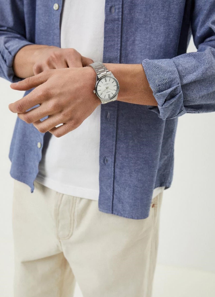 Удобная застежка, расстегиваемая одним касанием. Благодаря своей конструкции она никогда не размыкается полностью, а раскладывается на три части. Это позволяет легко снимать и надевать часы, сводя вероятность их падения или потери при случайном расстегивании к минимуму.