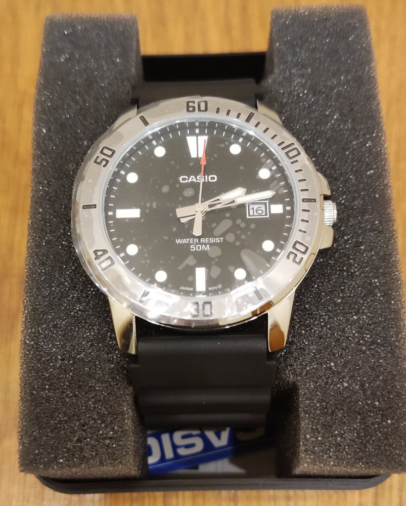 Casio MTP-VD01-1E - это мужские наручные часы от известного японского бренда Casio, который зарекомендовал себя на рынке как производитель надежной и качественной продукции. Корпус изготовлен из высококачественной нержавеющей стали 316L с высокими антикоррозийными свойствами, что обеспечивает долговечность и сохранность внешнего вида часов. На циферблате отображается текущее число месяца, что делает часы еще более функциональными и удобными в использовании. Полимерный ремешок из натурального материала обеспечивает исключительную прочность и гибкость, что делает ношение часов комфортным и удобным. Минеральное стекло защищает часы от повреждений, а водонепроницаемость до 5 Бар позволяет носить часы в любых условиях. Часы Casio MTP-VD01-1E имеют серебристый корпус и синий циферблат, что придает им стильный и современный вид. Вес часов составляет 79 грамм, а их размеры 49 мм в ширину и 10 мм в толщину. Часы работают от батарейки, обеспечивая запас хода на 36 месяцев. В целом, Casio MTP-VD01-1E - это надежные, функциональные и стильные мужские наручные часы, которые станут отличным выбором для тех, кто ценит качество и комфорт. Другие наименования модели: MTP-VD01-1EVUDF.