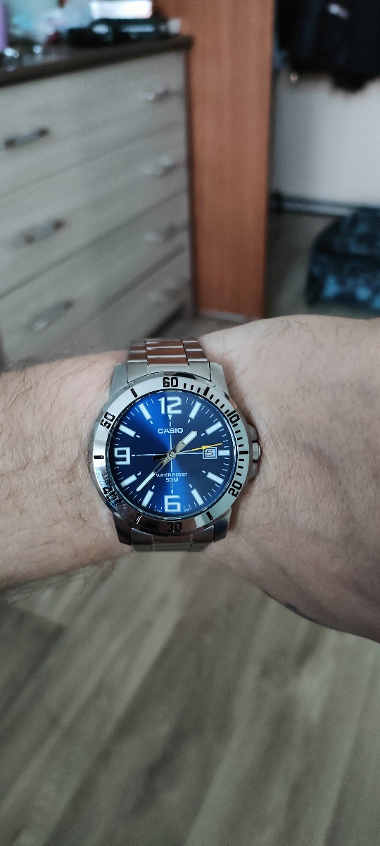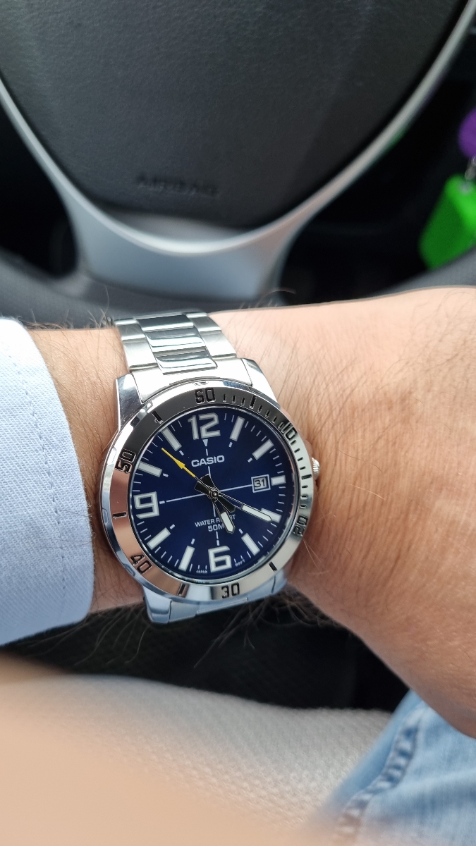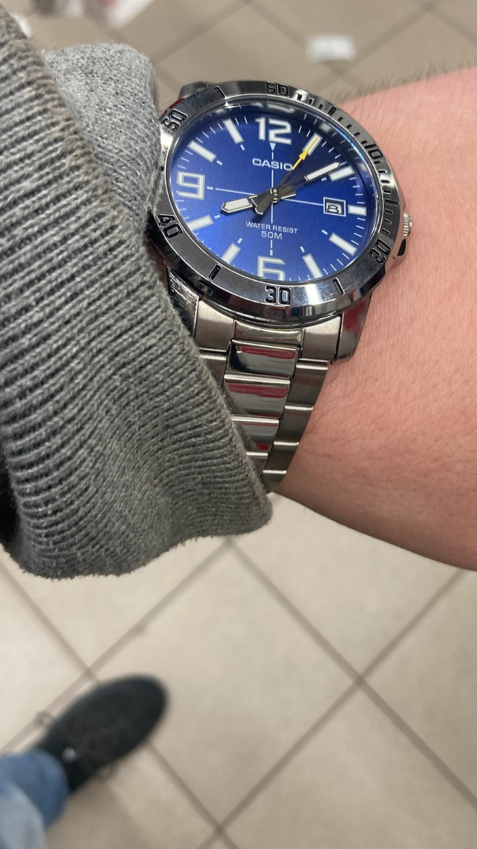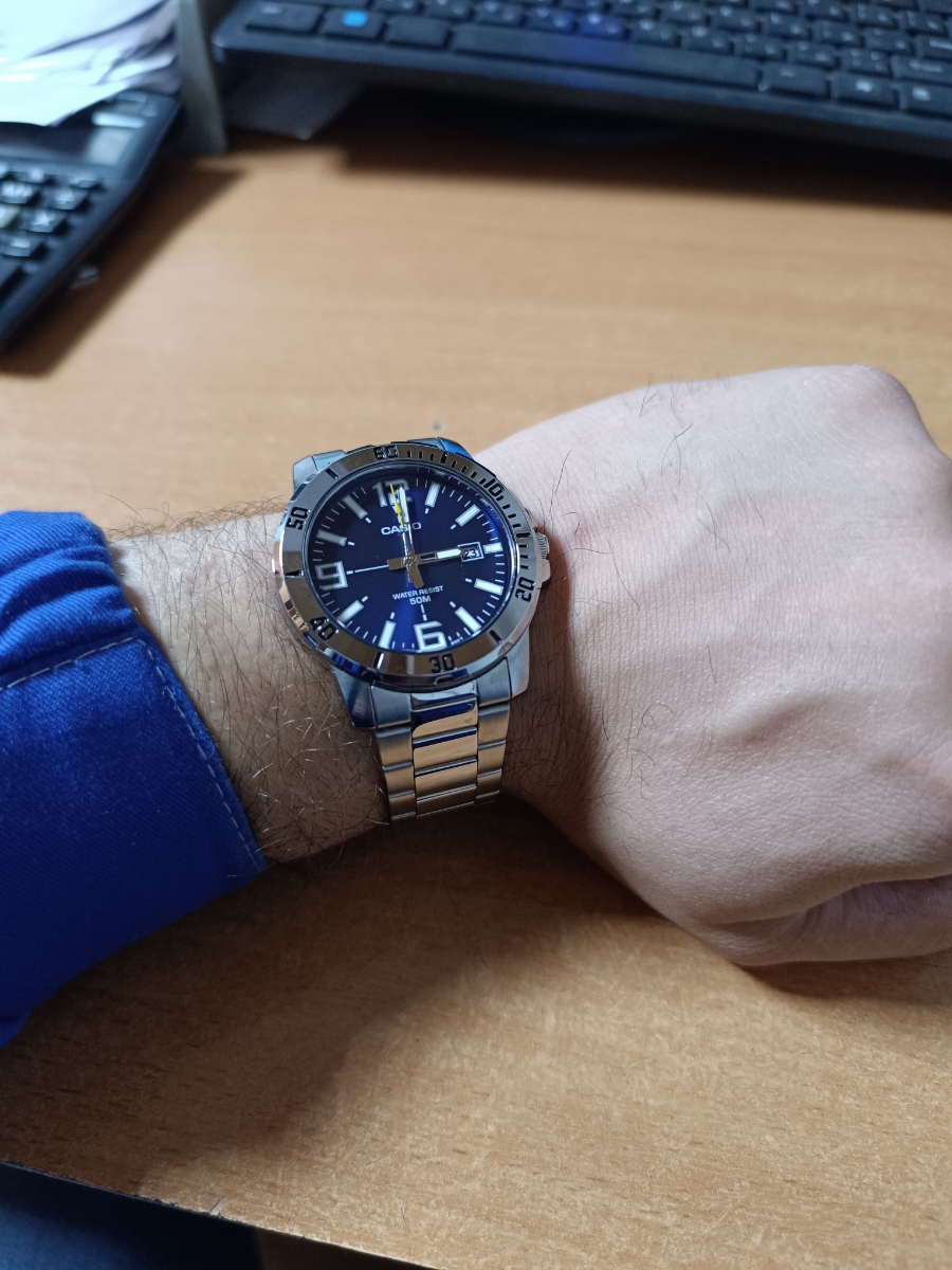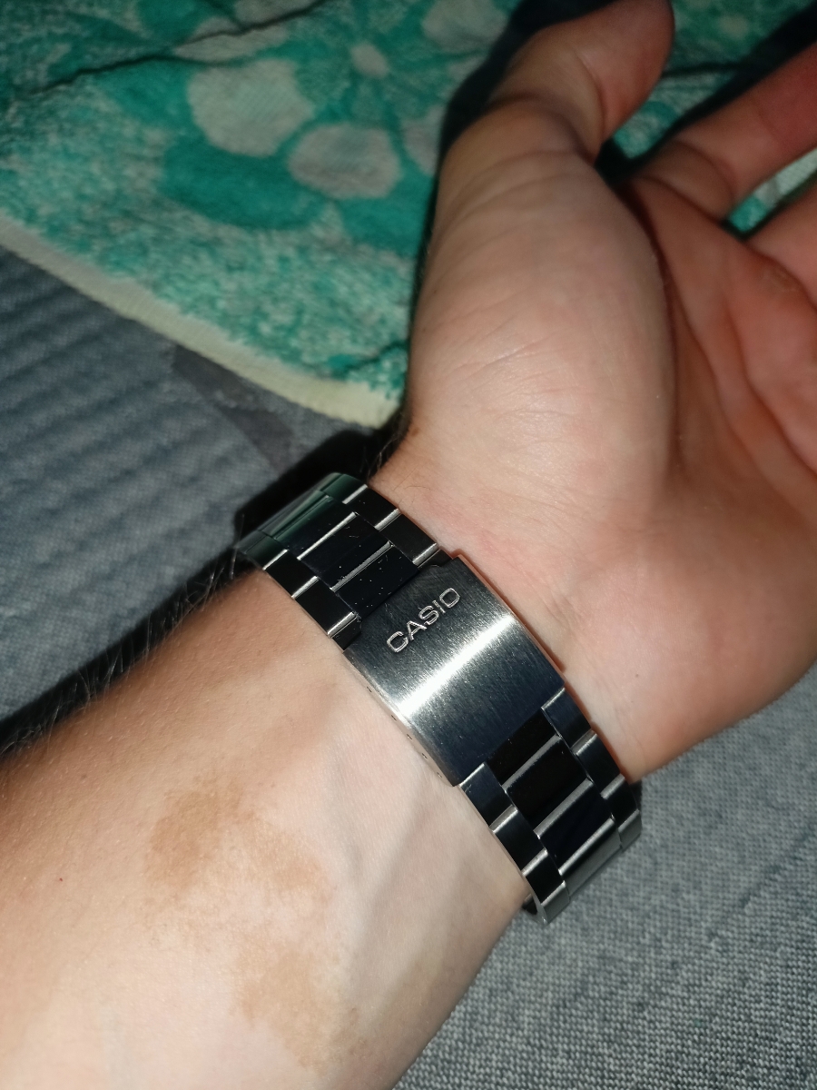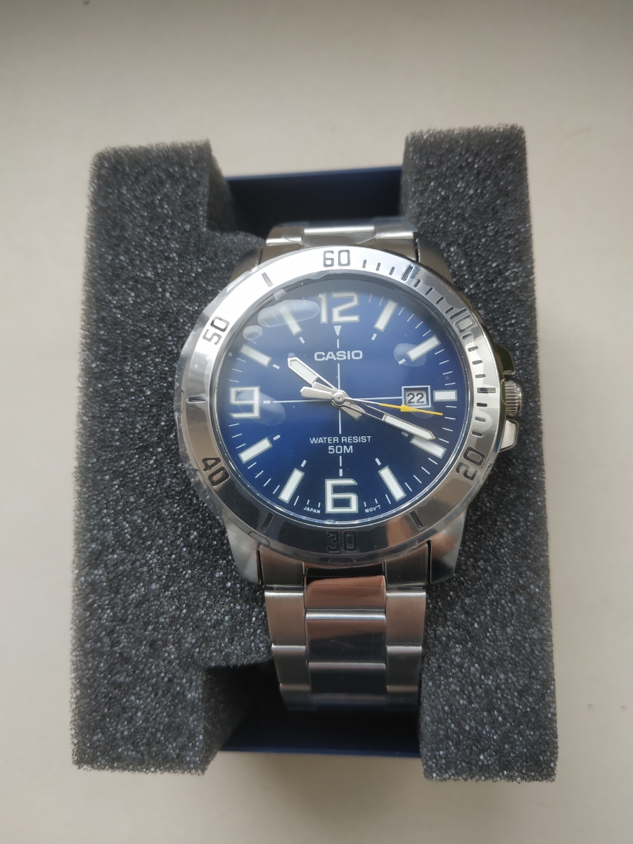 К часам марки Casio претензий никогда не было, покупаю не первый раз. Все самое необходимое в этих часах есть, корпус и браслет из нержавеющей стали, минеральное стекло, дата, водонепроницаемость 50м, батарейка служит долго и внешний вид нравится, уже подогнал по руке. Доставили в срок, упаковали в пупырку, цена отличная.