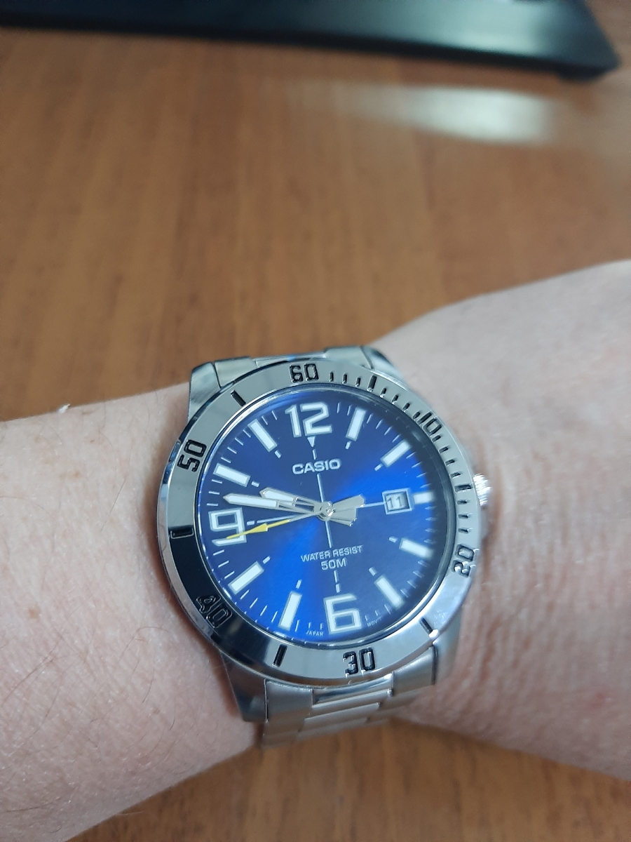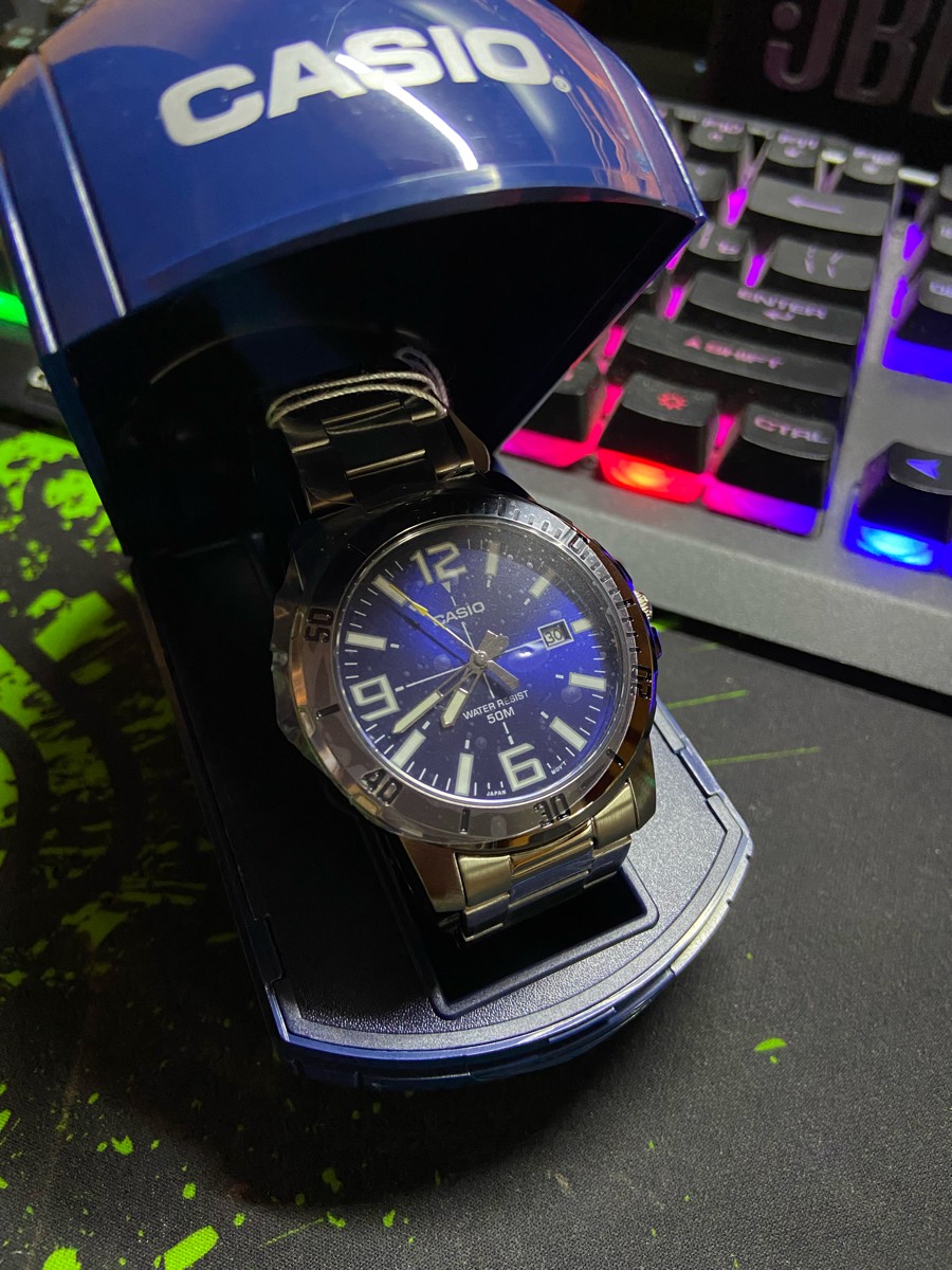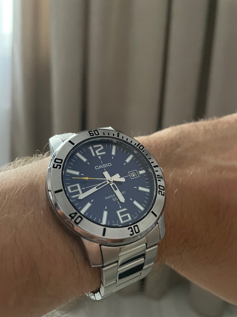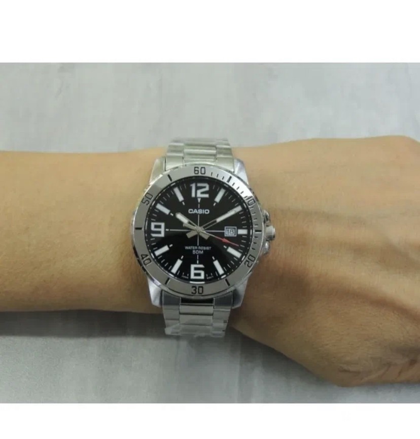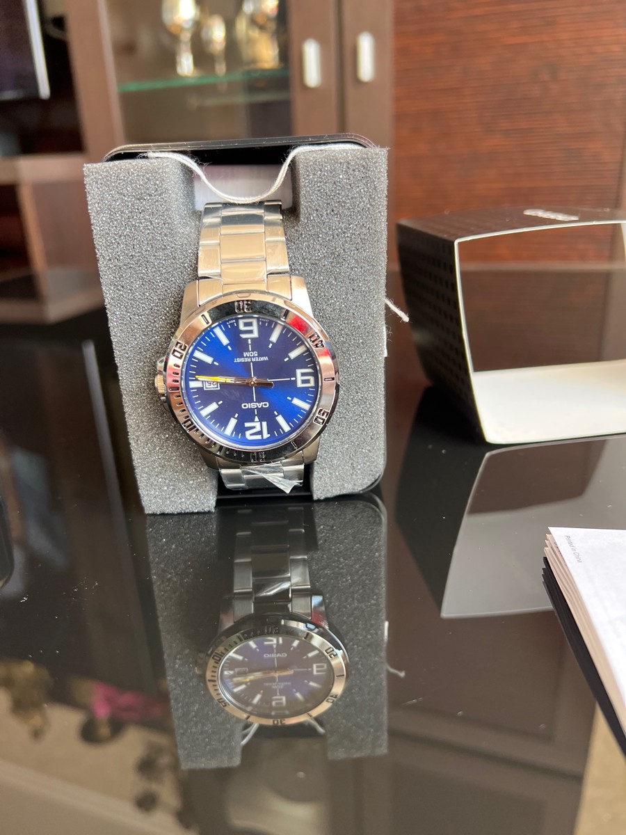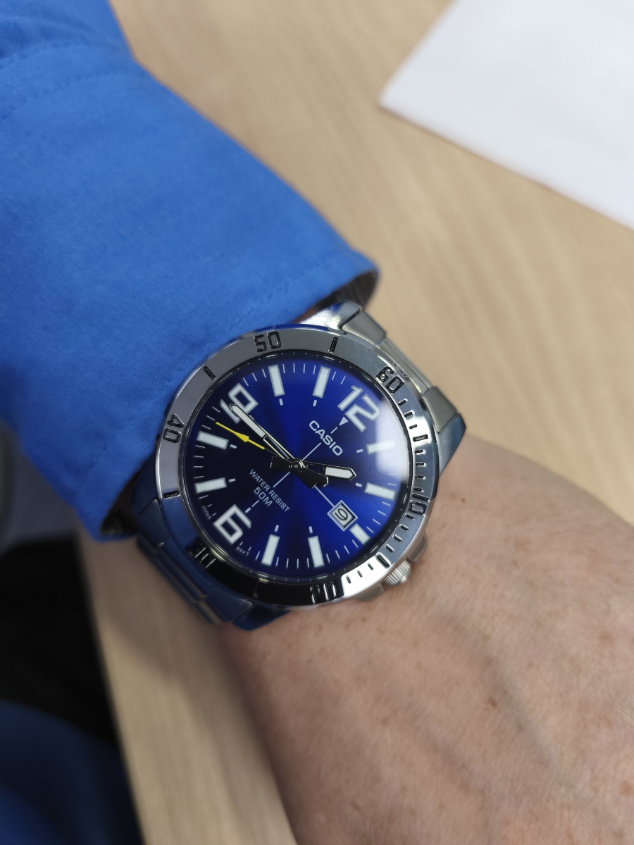 К часам марки Casio претензий никогда не было, покупаю не первый раз. Все самое необходимое в этих часах есть, корпус и браслет из нержавеющей стали, минеральное стекло, дата, водонепроницаемость 50м, батарейка служит долго и внешний вид нравится, уже подогнал по руке. Доставили в срок, упаковали в пупырку, цена отличная.