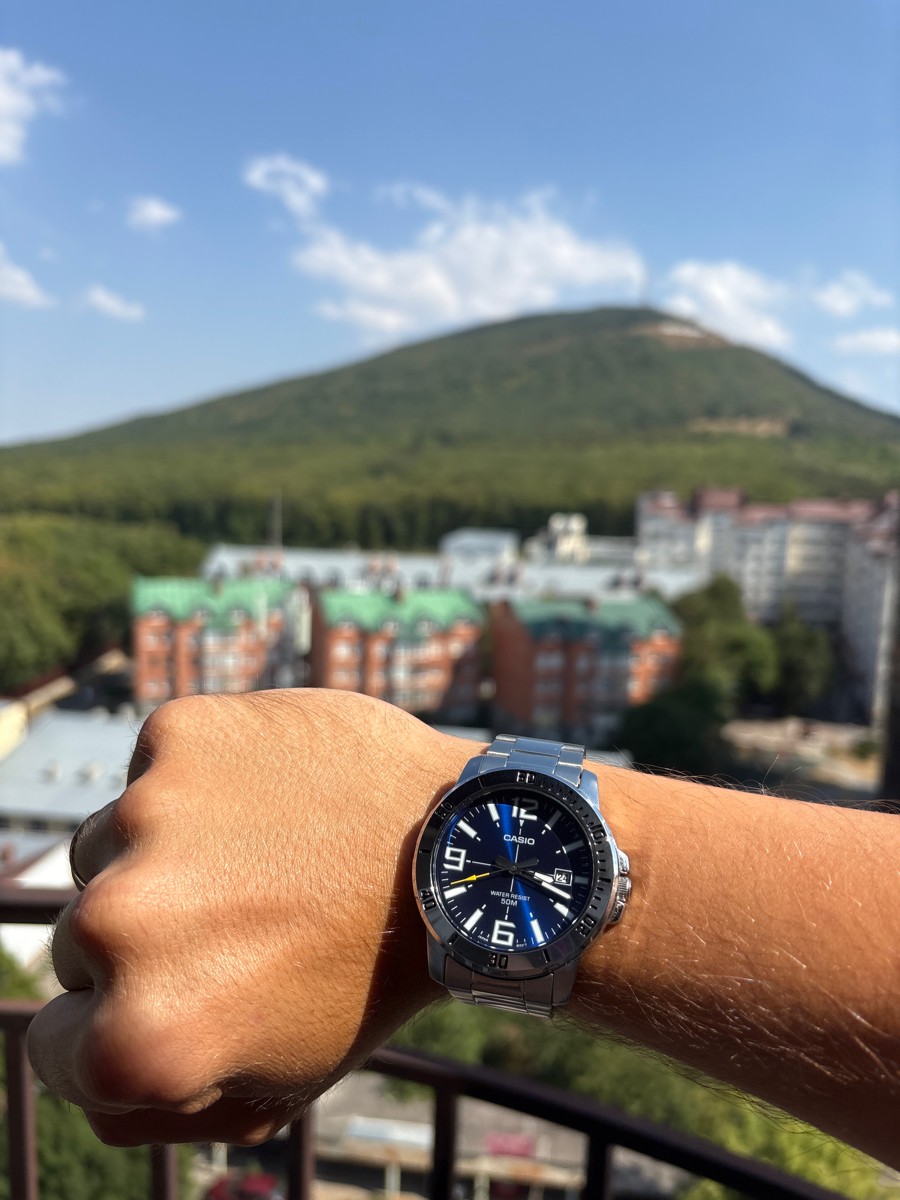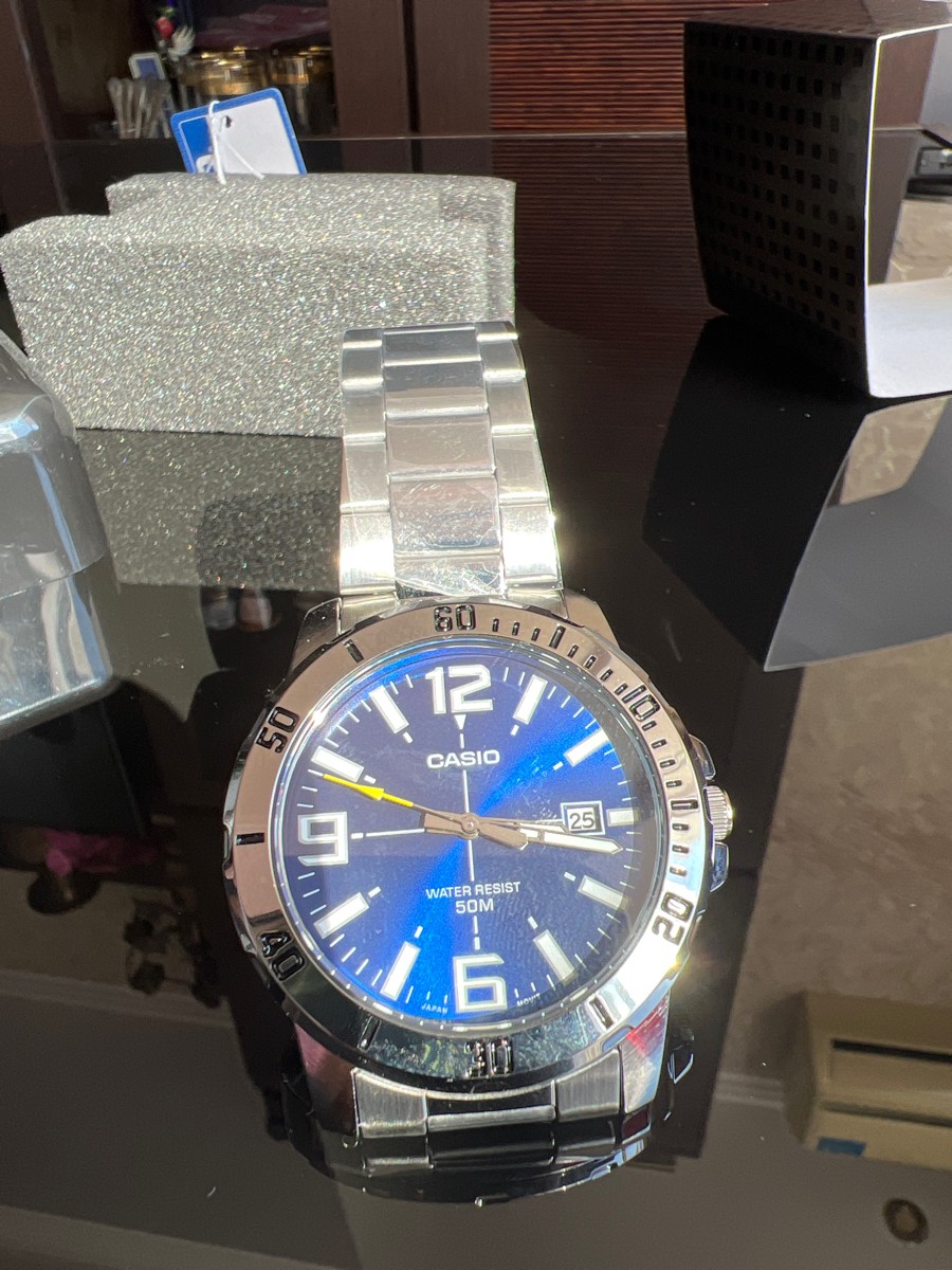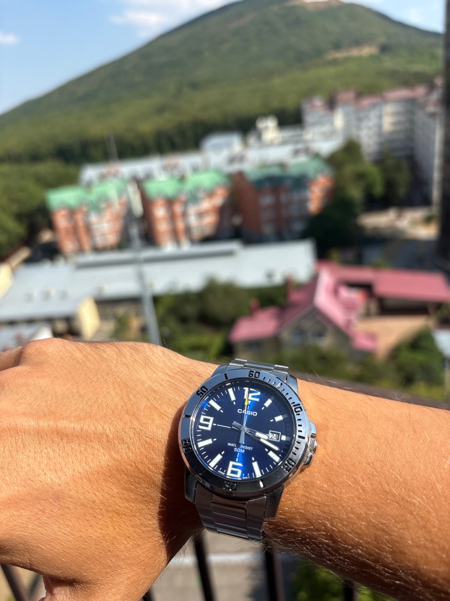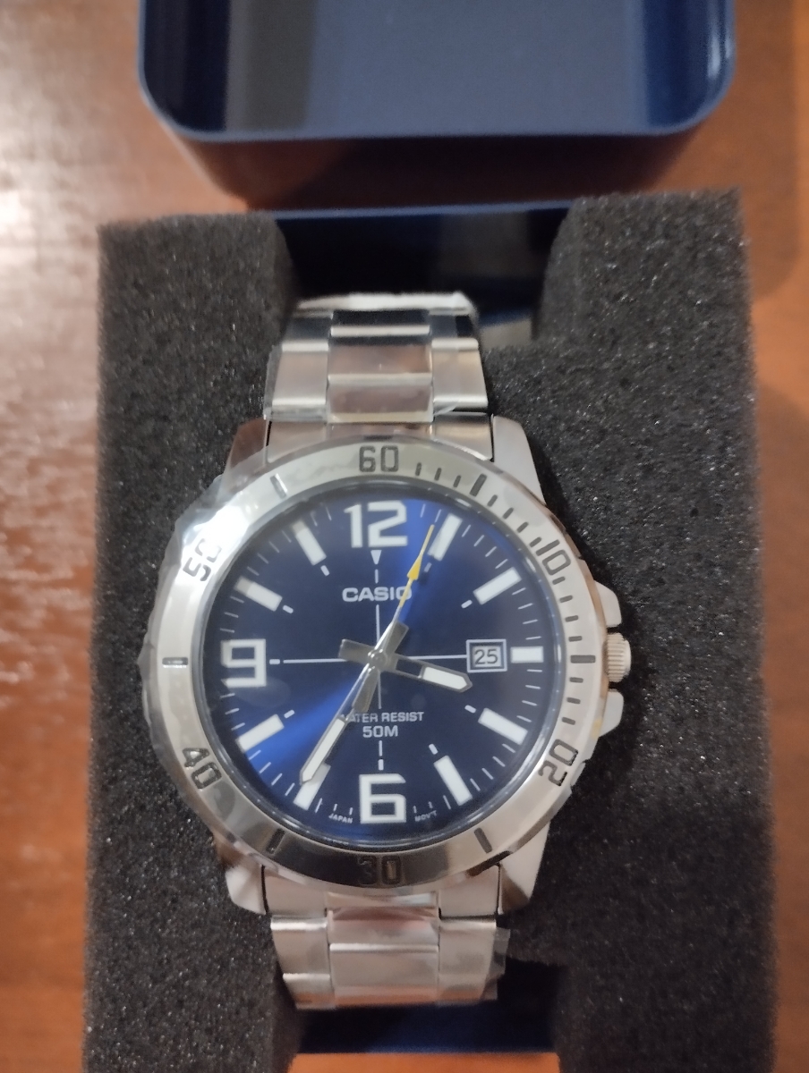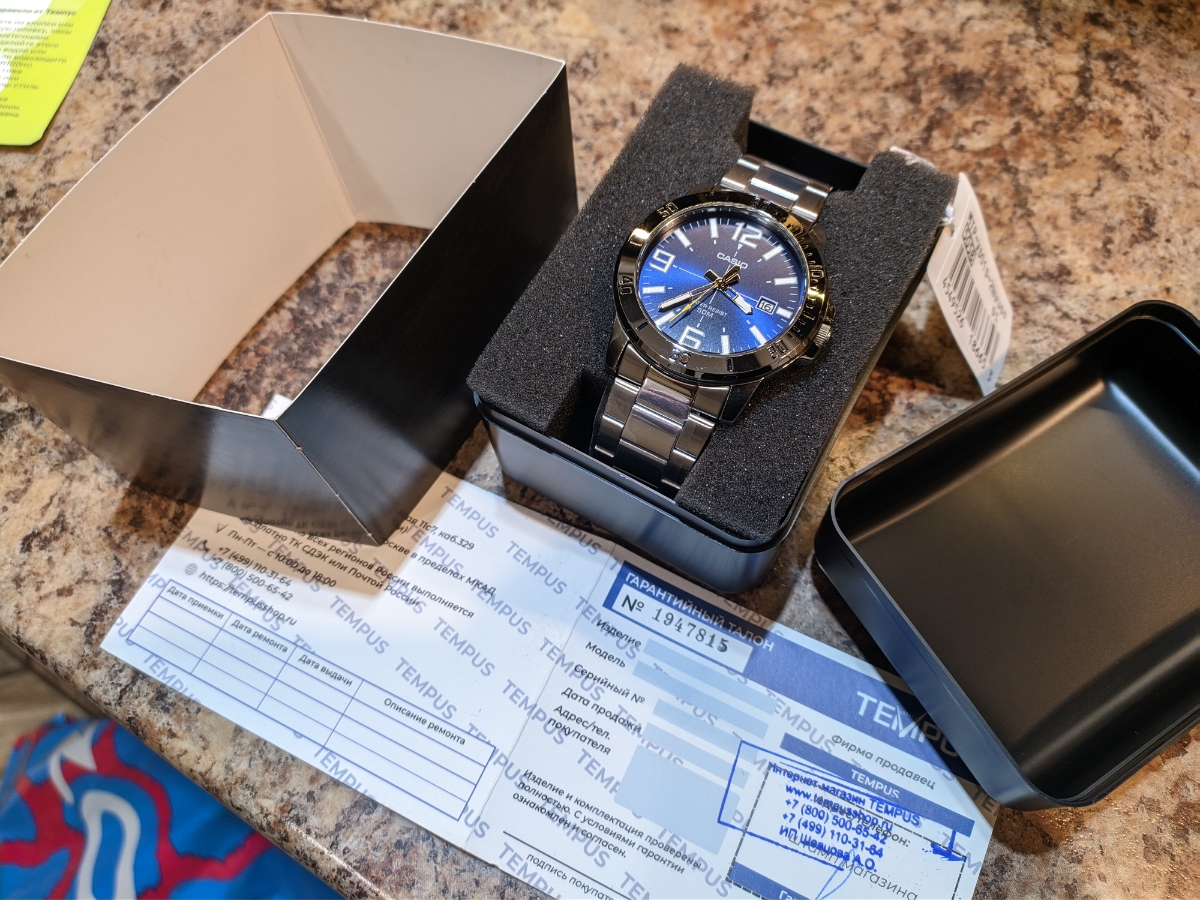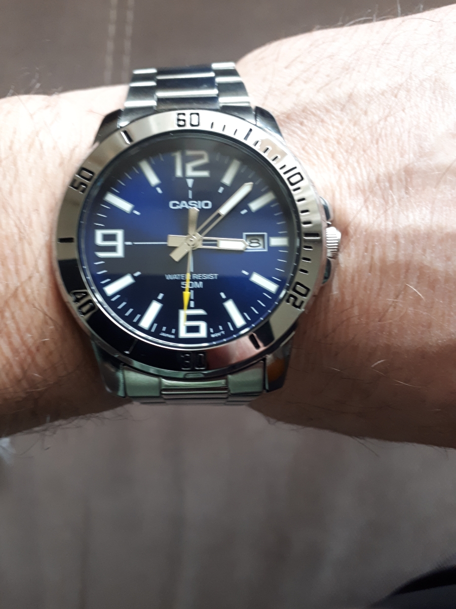 К часам марки Casio претензий никогда не было, покупаю не первый раз. Все самое необходимое в этих часах есть, корпус и браслет из нержавеющей стали, минеральное стекло, дата, водонепроницаемость 50м, батарейка служит долго и внешний вид нравится, уже подогнал по руке. Доставили в срок, упаковали в пупырку, цена отличная.