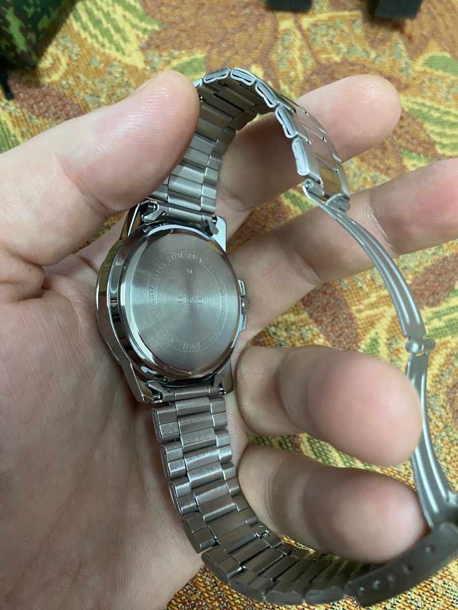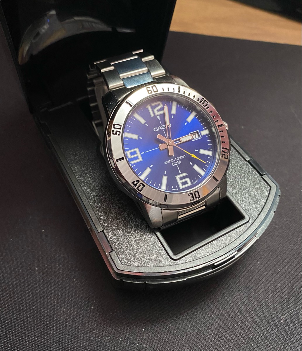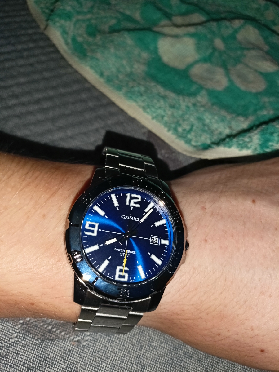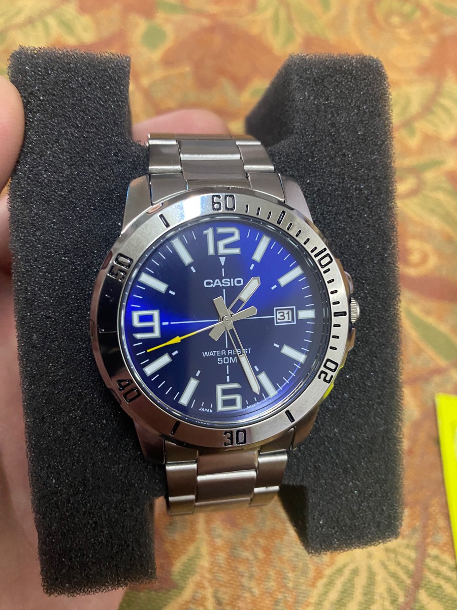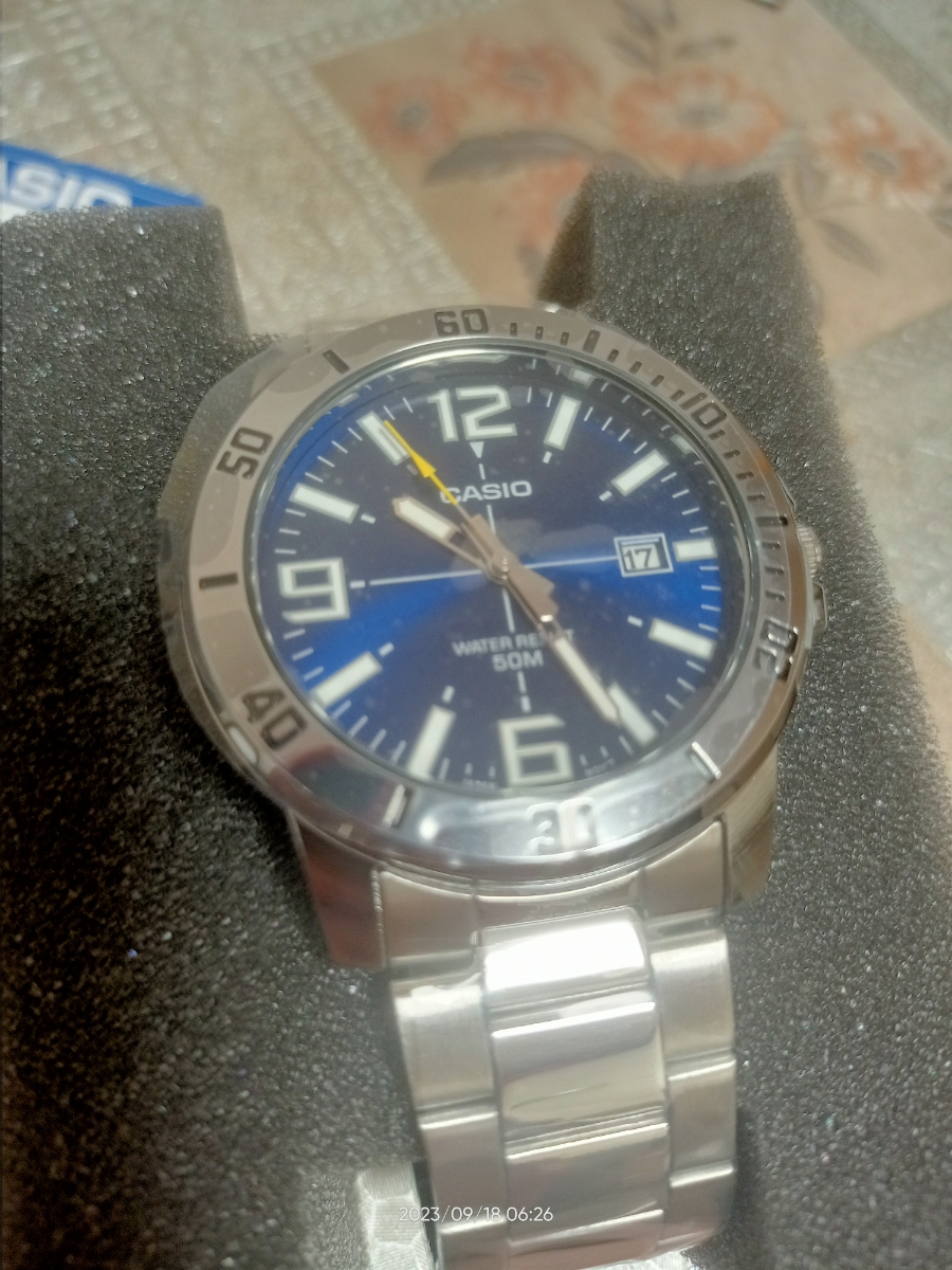 К часам марки Casio претензий никогда не было, покупаю не первый раз. Все самое необходимое в этих часах есть, корпус и браслет из нержавеющей стали, минеральное стекло, дата, водонепроницаемость 50м, батарейка служит долго и внешний вид нравится, уже подогнал по руке. Доставили в срок, упаковали в пупырку, цена отличная.