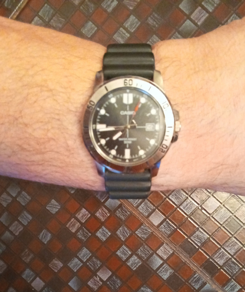 Часы покупала в подарок мужу на днюху. Понравились. Ходят точно. Воды не боятся. Единственная проблема возникла из-за того, что браслет на диаметр запястья 22 см. оказался мал. Пришлось поставить браслет от старых часов. А так всё класс.