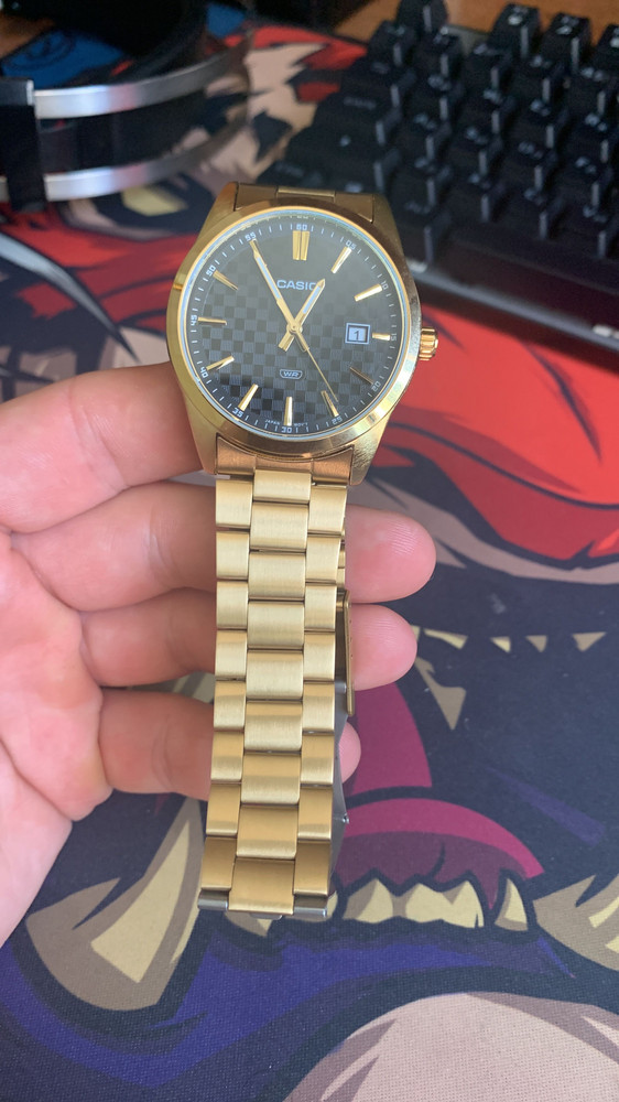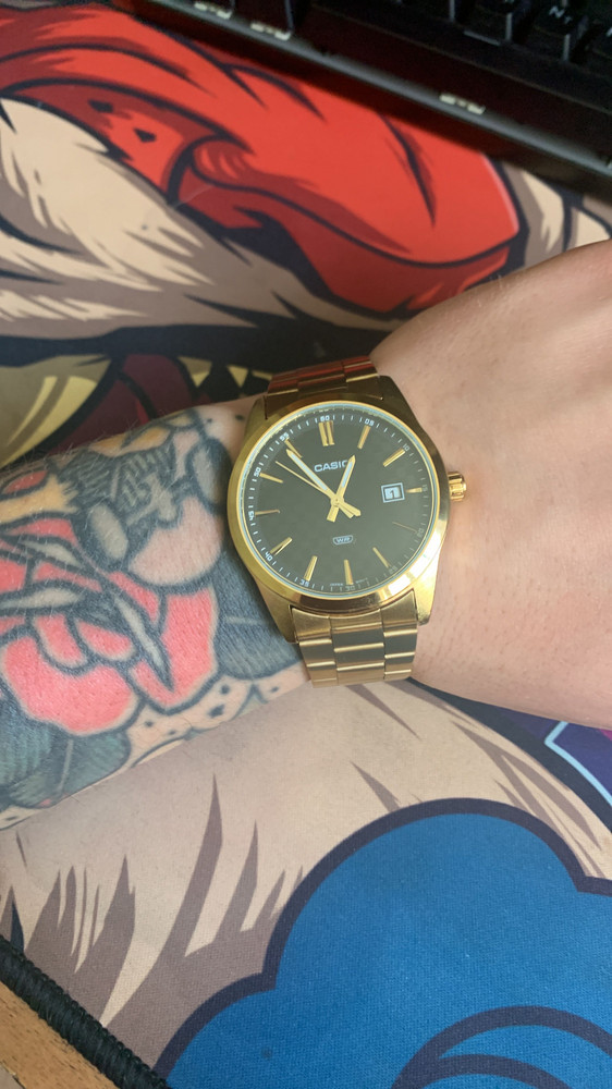 Мужские наручные часы Casio Collection MTP-VD03G-1A. Точный кварцевый механизм с аналоговой индикацией. Браслет из нержавеющей стали. Аккумулятор обеспечивает часы достаточным питанием приблизительно на 3 года. Браслет из нержавеющей стали. Прочное, устойчивое к царапинам минеральное стекло защищает часы от повреждений. На циферблате отображается текущее число месяца. Часы являются водонепроницаемыми до 3 Бар. Цвет циферблата: Желтое золото. Цвет корпуса: Черный. На стрелки и отметки нанесен светонакопительный состав, благодаря этому считывать информацию с циферблата возможно и в темноте. Толщина: 10 мм. Гарантия: 2 года.