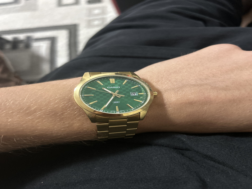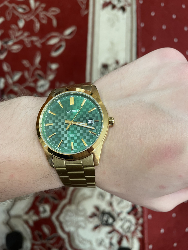 Классные часы, но носить думаю лучше в строгой одеждой. Светлый костюм или белая рубашка. С темной растянутой футболкой будет безвкусно. Ну и золотые часы лучше надевать раза 2-3 за год, чаще уже будет страно выглядеть. Аксессуар не для всех, но кто надумал брать - всем советую!