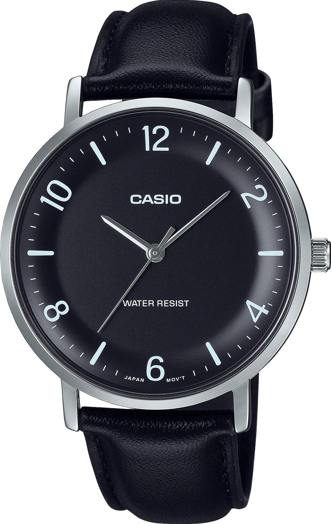 Мужские наручные часы Casio Collection MTP-VT03L-1B. Точный кварцевый механизм с аналоговой индикацией. Ремешок изготовлен из кожи. Аккумулятор обеспечивает часы достаточным питанием приблизительно на 3 года. Браслет из нержавеющей стали. Прочное, устойчивое к царапинам минеральное стекло защищает часы от повреждений. Часы являются водонепроницаемыми до 3 Бар. Цвет циферблата: Серебристый. Цвет циферблата: Черный. Цвет корпуса: Черный. Толщина: 8.2 мм. Гарантия: 2 года.
