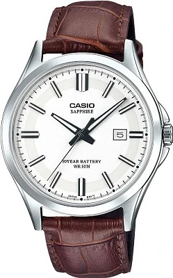 Мужские наручные часы. Кварцевый механизм с центральной секундной стрелкой и окошком даты. Серебристый циферблат. Сапфировое стекло. Корпус и браслет из нержавеющего стального сплава. Заводная головка с защитой.
