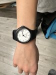 Наручные часы на резиновом браслете, черного цвета , с окошком даты и центральной секундной стрелкой.