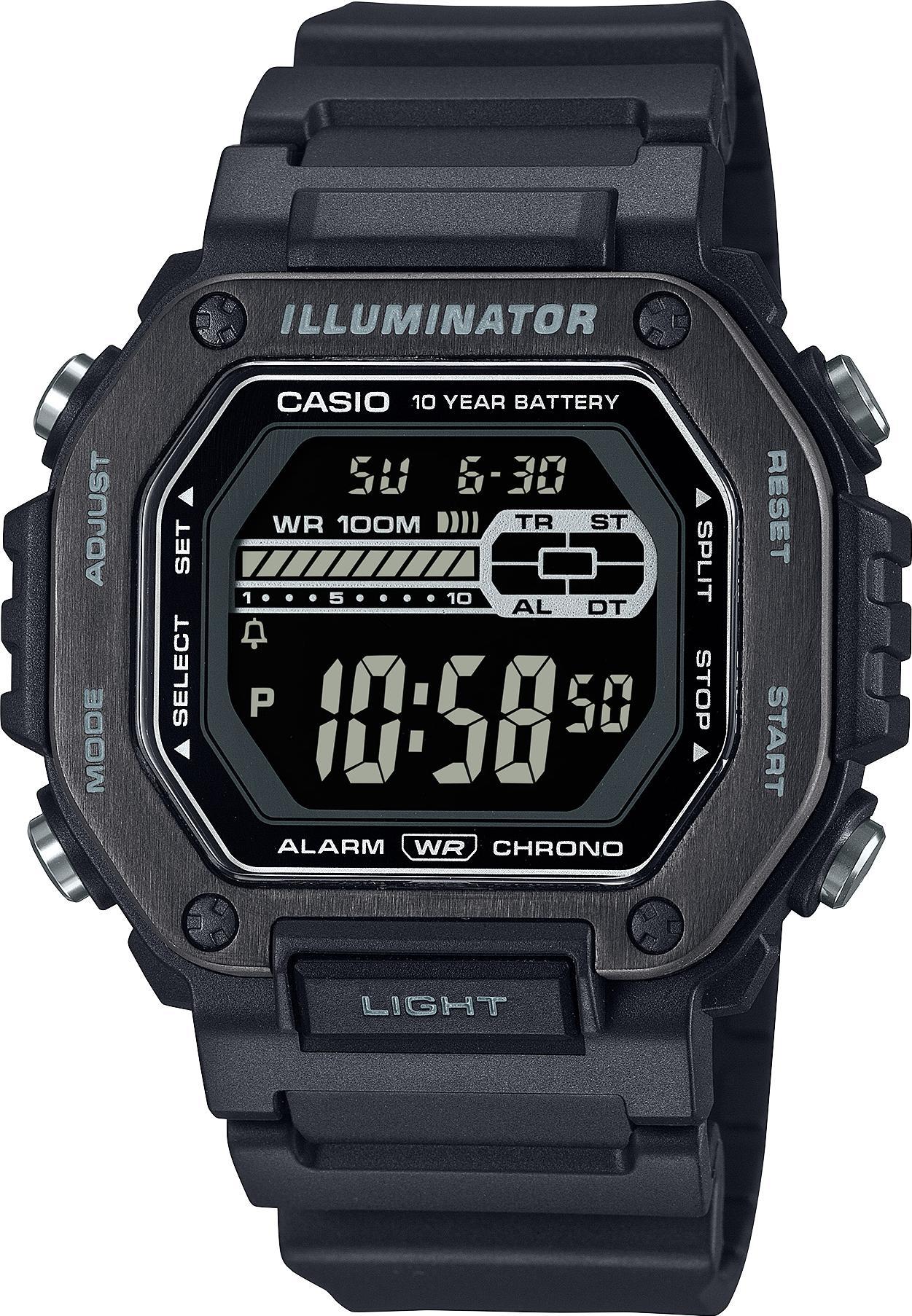 Мужские наручные часы Casio Collection MWD-110HB-1B. Точный кварцевый механизм с цифровой индикацей. Полимерный ремешок. Натуральный полимерный материал является идеальным для изготовления ремешка благодаря своей чрезвычайной прочности и гибкости. После настройки автоматический календарь всегда отображает точную дату. Для подсветки дисплея используется светодиод, а так же имеет функцию автоматического включения подсветки, если Вы наклоните часы к своему лицу. Функция будильника. Ежечасный сигнал. Функция хронографа. Отображение текущего времени в основных городах и конкретных областях по всему миру. Функция таймера. Таймеры обратного отсчета напомнят Вам о текущих или особенных событиях, издав звуковой сигнал в установленное время. Отображение времени возможно в 12-часовом или 24-часовом формате. Браслет из нержавеющей стали. Органическое стекло. На циферблате отображается текущее число, месяц и день недели. Часы являются водонепроницаемыми до 10 Бар. Цвет циферблата: Черный. Цвет корпуса: Черный. Светодиодная подсветка. Высота (с ушками): 51 мм. Толщина: 12 мм. Гарантия: 2 года.