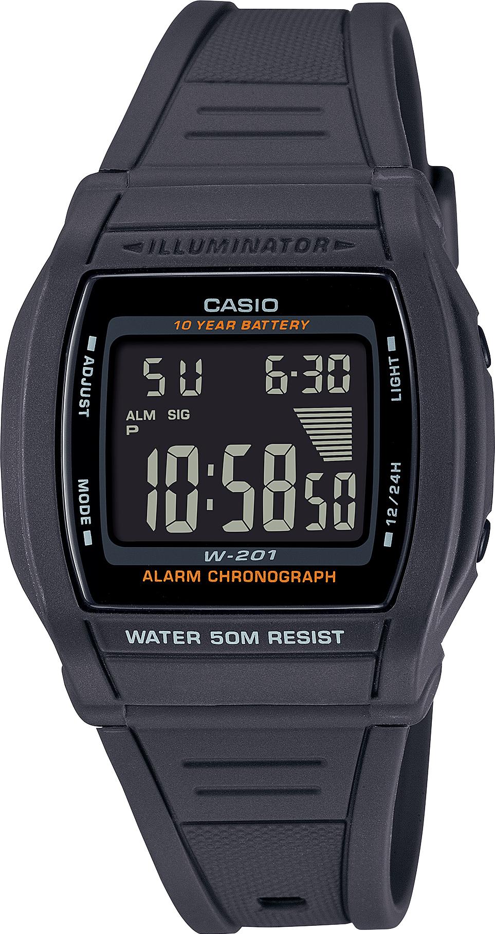 Мужские наручные часы Casio Collection W-201-1B. Точный кварцевый механизм с аналоговой индикацией. Полимерный корпус надежно защищает часы от механических повреждений. Светодиодная подсветка. На циферблате отображается текущее число, месяц и день недели. Ударопрочная конструкция часов защищает от ударов и вибрации. Функция хронографа. Функция таймера. Таймеры обратного отсчета напомнят Вам о текущих или особенных событиях, издав звуковой сигнал в установленное время. Функция будильника. Аккумулятор обеспечивает часы достаточным питанием приблизительно на 10 лет. После настройки автоматический календарь всегда отображает точную дату. Отображение времени возможно в 12-часовом или 24-часовом формате. Ударопрочная конструкция часов защищает от ударов и вибрации. Функция хронографа. Функция таймера. Таймеры обратного отсчета напомнят Вам о текущих или особенных событиях, издав звуковой сигнал в установленное время. Функция будильника. Аккумулятор обеспечивает часы достаточным питанием приблизительно на 10 лет. После настройки автоматический календарь всегда отображает точную дату. Отображение времени возможно в 12-часовом или 24-часовом формате. Полимерный ремешок. Натуральный полимерный материал является идеальным для изготовления ремешка благодаря своей чрезвычайной прочности и гибкости. Органическое стекло. Часы являются водонепроницаемыми до 5 Бар. Цвет корпуса: Черный. Цвет циферблата: Черный. Ширина (с заводной головкой): 40мм. Толщина: 10мм. Гарантия: 2 года. Другие наименования модели: W-201-1BVD.