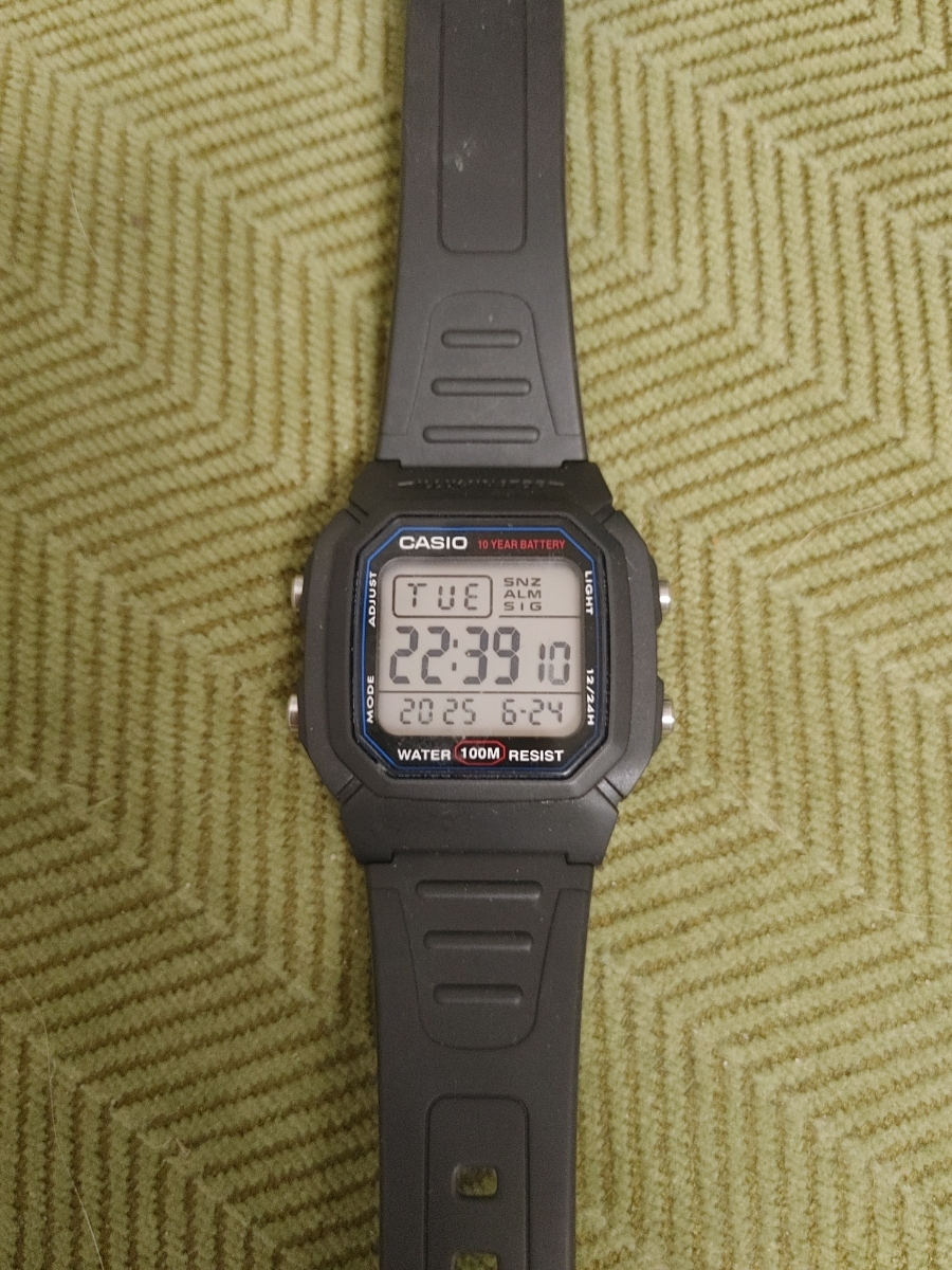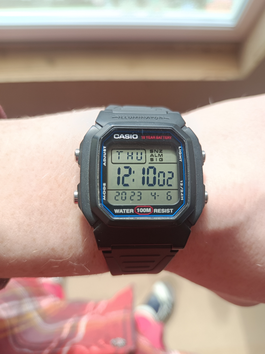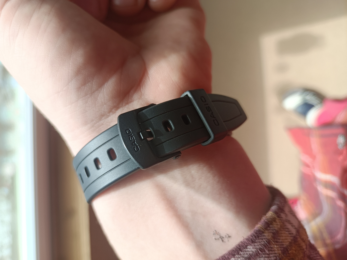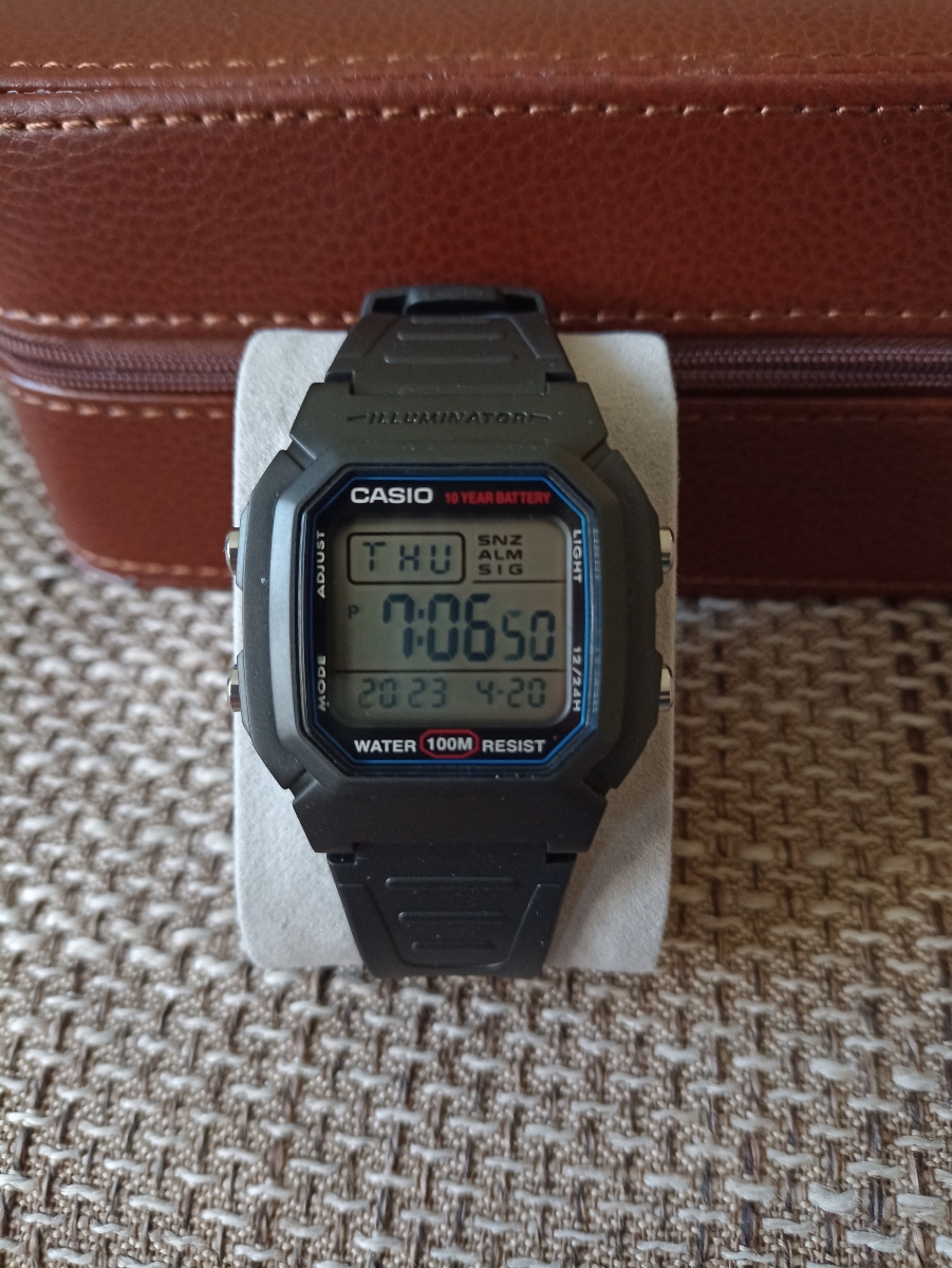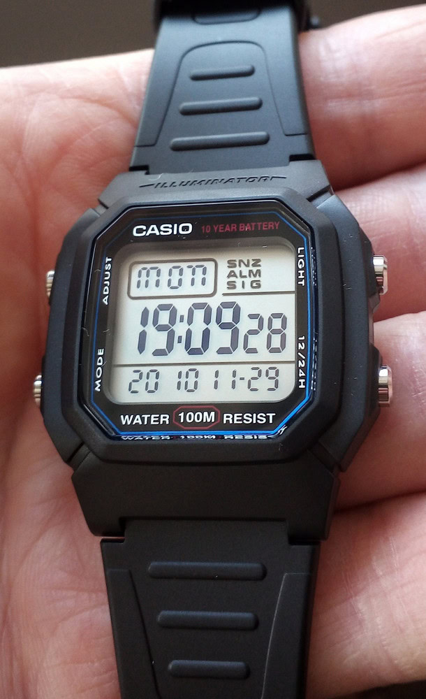 Думал, что будут маленькие, но размер то, что надо, даже на моем 19 см запястье. Ремешок с запасом на больший размер! Дисплей четкий, один из самых читабельный, время видно под любым углом и в сумерках. Зелёная подсветка. Кнопки нажимаются с усилием, это отлично, сами не нажмутся и время не собьется. Мне понравились часики, очень качественная и сбалансированная модель.