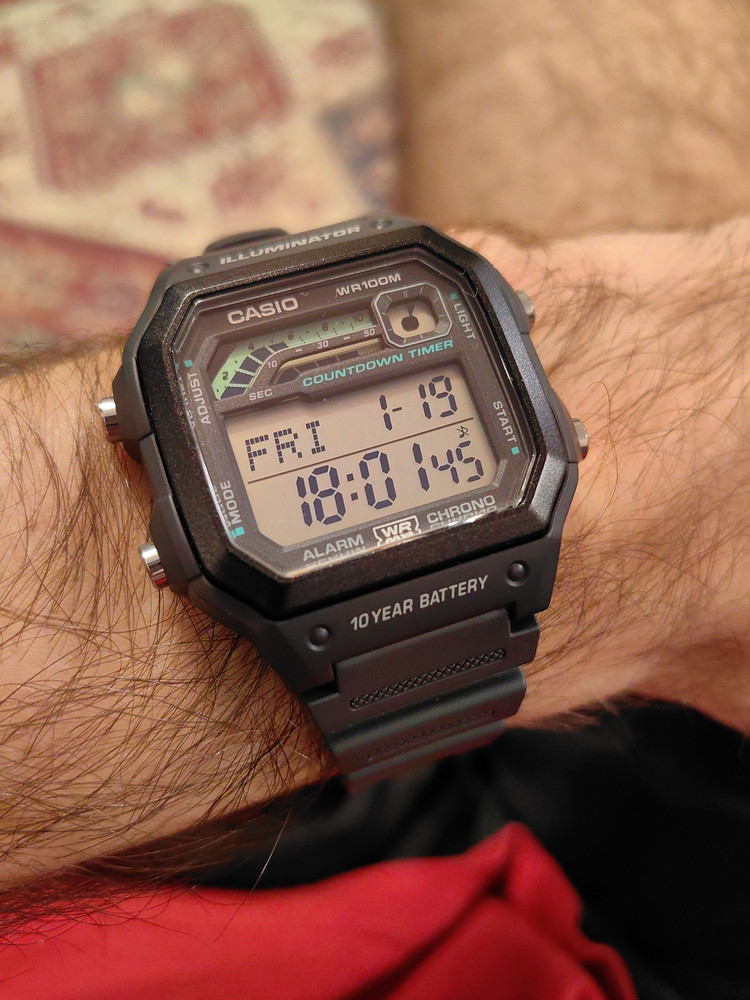 Часы отличные. Оригинал. В стиле 80-х. Есть все необходимые функции, возможность плавать и 10 лет батарея. Корпус относительно джи шоков компактен и лёгок. В общем очень неплохие часы.