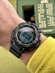 Редкий лимитированный релиз второй половины 2025 года — цифровые часы из серии PRG-340, выпущенные в честь 30-летия линейки часов Pro Trek. Выполнены в черном полимерном корпусе с ремешком и безелем цвета хаки, а металлические детали имеют золотой оттенок. Созданной цветовой гаммой дизайнеры Casio отсылают нас к лучам солнца, пробивающиеся сквозь лесные деревья, что отражает концепцию коллекции Pro Trek — «Единение с природой». На ремешке часов вы найдете перечень всех ключевых моделей протрек с годами их релиза за прошедшие 30 лет, на задней крышке — памятную юбилейную гравировку. Модель имеет функции: термометр, барометр, высотомер, компас и солнечная батарея, данные о заходе и восходе Солнца, автоматическая подсветка и еще более десятка часовых функций! Стоит отдельно отметить, что все полимерные материалы, использующиеся в часах, являются биопластиком, то есть созданы из возобновляемых органических ресурсов.