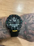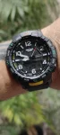 Циферблат с арабскими цифрами обеспечивает легкую, наглядную читабельность. Корпус часов с наружи имеет большой вращающийся безель - неизменный аттрибут походных часов.