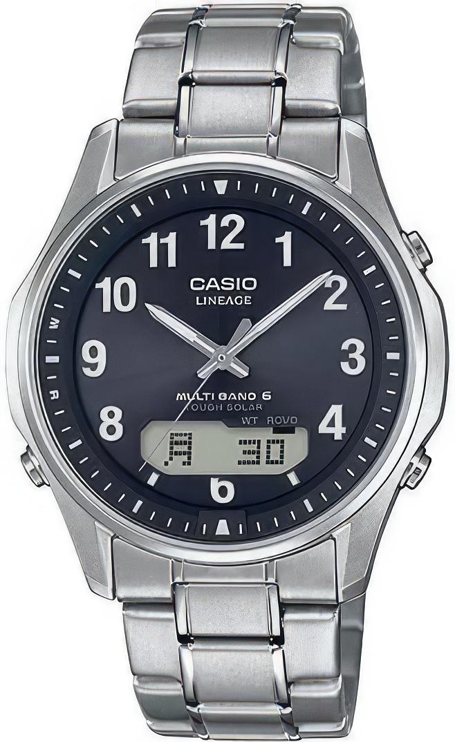 Японские наручные часы, предназначенные для мужчин. Универсальный дизайн. Круглый корпус из нерж.стали. Сапфировое стекло. Многофункциональный механизм цифроаналоговой индикацией и солнечной батареей, подстройка времени по радиосигналу, мировое время