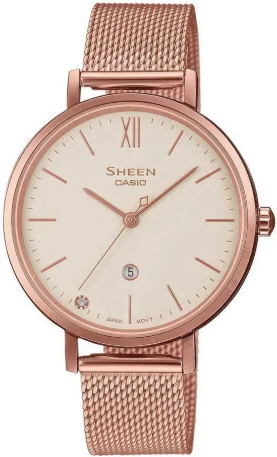 Женские кварцевые часы из серии Sheen. Круглый стальной корпус с PVD покрытием цвета розового золота. Циферблат украшен кристаллами Swarovski. Сапфировое стекло. WR 50 м. Стальной браслет с PVD покрытием цвета розового золота. Размыкающийся замок.