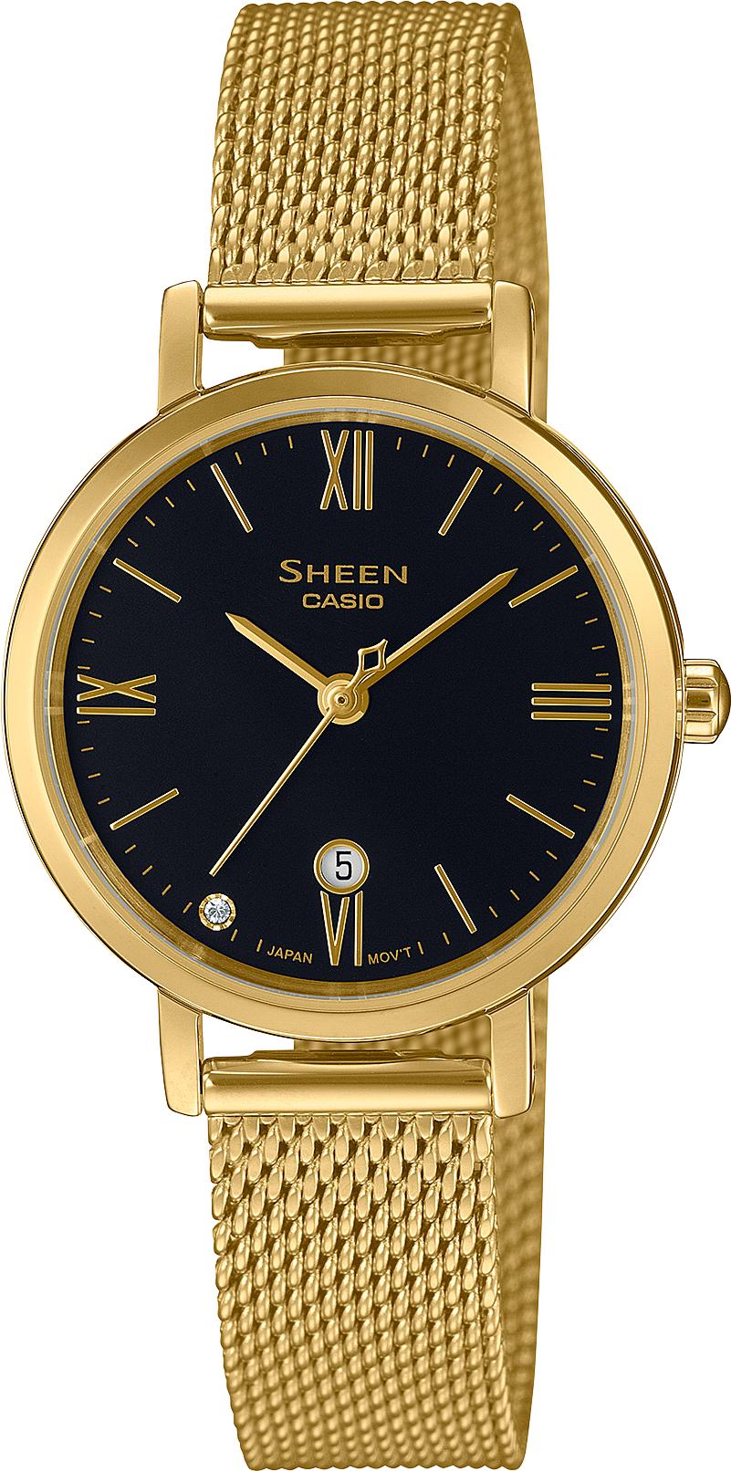 Женские наручные часы Casio Sheen SHE-4540GM-1A. Точный кварцевый механизм с аналоговой индикацией. Браслет из нержавеющей стали. Аккумулятор обеспечивает часы достаточным питанием приблизительно на 2 года. Браслет из нержавеющей стали. Сапфировое стекло. Искусственно изготовленное стекло с высокой прочностью и устойчивостью к царапинам. На циферблате отображается текущее число месяца. Часы являются водонепроницаемыми до 5 Бар. Цвет циферблата: Желтое золото. Цвет корпуса: Черный. Высота (с ушками): 35 мм. Толщина: 6 мм. Гарантия: 2 года.