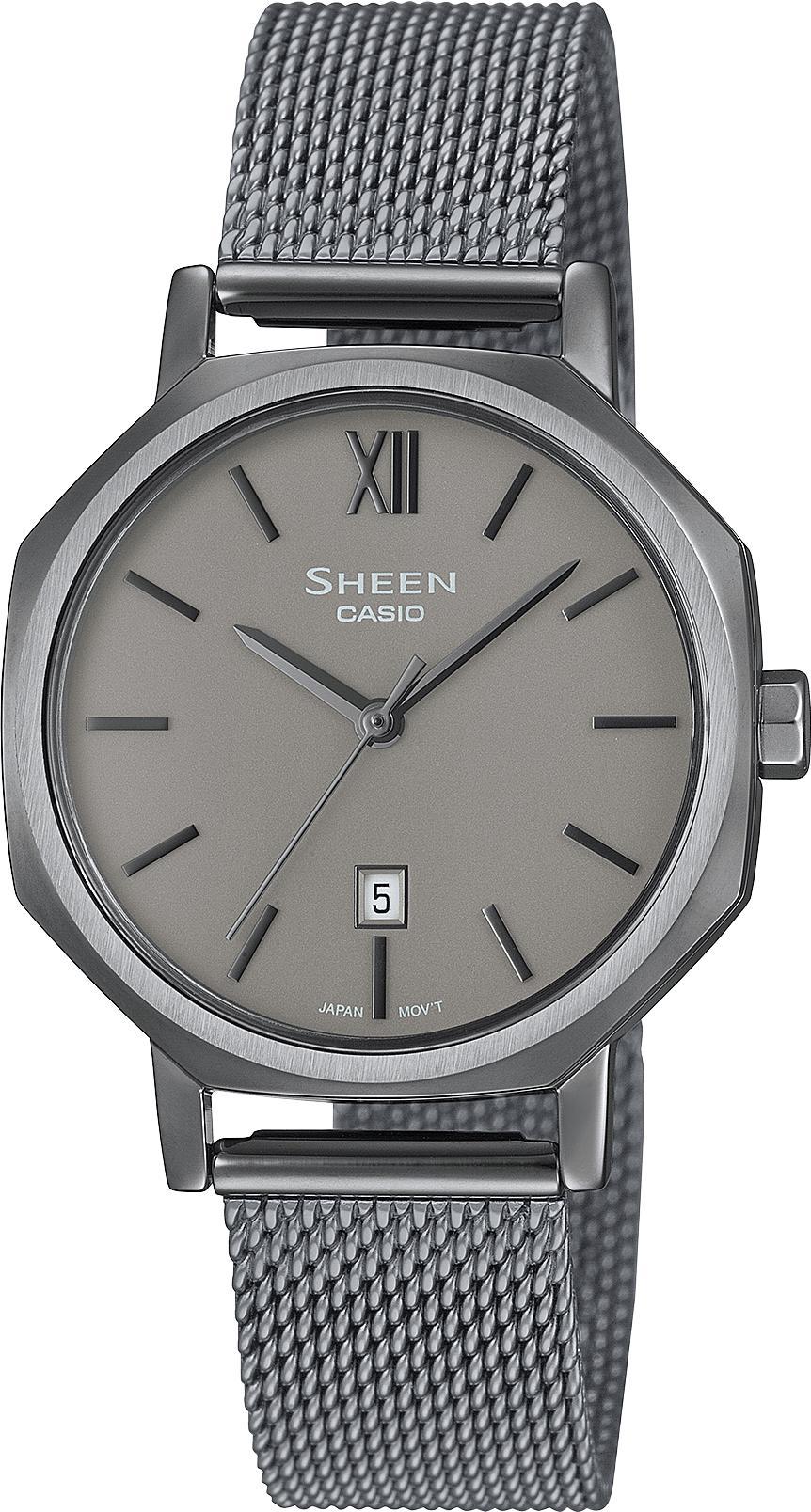 Женские наручные часы Casio Sheen SHE-4554GYM-8A. Точный кварцевый механизм с аналоговой индикацией. Корпус изготовлен из высококачественной нержавеющей стали 316L с высокими антикоррозийными свойствами. На циферблате отображается текущее число месяца. Аккумулятор обеспечивает часы достаточным питанием приблизительно на 3 года. Браслет из нержавеющей стали. Сапфировое стекло. Искусственно изготовленное стекло с высокой прочностью и устойчивостью к царапинам. Часы являются водонепроницаемыми до 5 Бар. Цвет корпуса: Серый. Цвет циферблата: Серый. Ширина (с заводной головкой): 30мм. Толщина: 8мм. Гарантия: 2 года. Другие наименования модели: SHE-4554GYM-8AUDF.