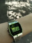 Ношу уже пару месяцев, все ок. Доволен. Ремешок стальной, корпус часов пластиковый, есть небольшие царапки, но в глаза не бросаются.