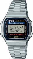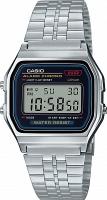 Мужские наручные часы Casio Vintage A-159WA-N1. Точный кварцевый механизм с цифровой индикацей. Полимерный корпус надежно защищает часы от механических повреждений. Светодиодная подсветка. На циферблате отображается текущее число месяца и день недели. Функция хронографа. Ежечасный сигнал. Функция будильника. Аккумулятор обеспечивает часы достаточным питанием приблизительно на 7 лет. После настройки автоматический календарь всегда отображает точную дату. Отображение времени возможно в 12-часовом или 24-часовом формате. Браслет из нержавеющей стали. Органическое стекло. Часы являются водонепроницаемыми до 3 Бар. Цвет корпуса: Серебристый. Цвет циферблата: Серый. Ширина (с заводной головкой): 33мм. Толщина: 8мм. Гарантия: 2 года. Другие наименования модели: A-159WA-N1D, A159WA-N1, A159WA-N1DF, A159WA-N1D.