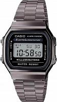 Наручные часы в стиле первых электронных моделей, предназначенные для мужчин и женщин. Ретро-дизайн. Пластиковый корпус с черным хромированием и браслет из нерж. стали. Многофункциональный кварцевый механизм с цифровой индикацией и подсветкой.