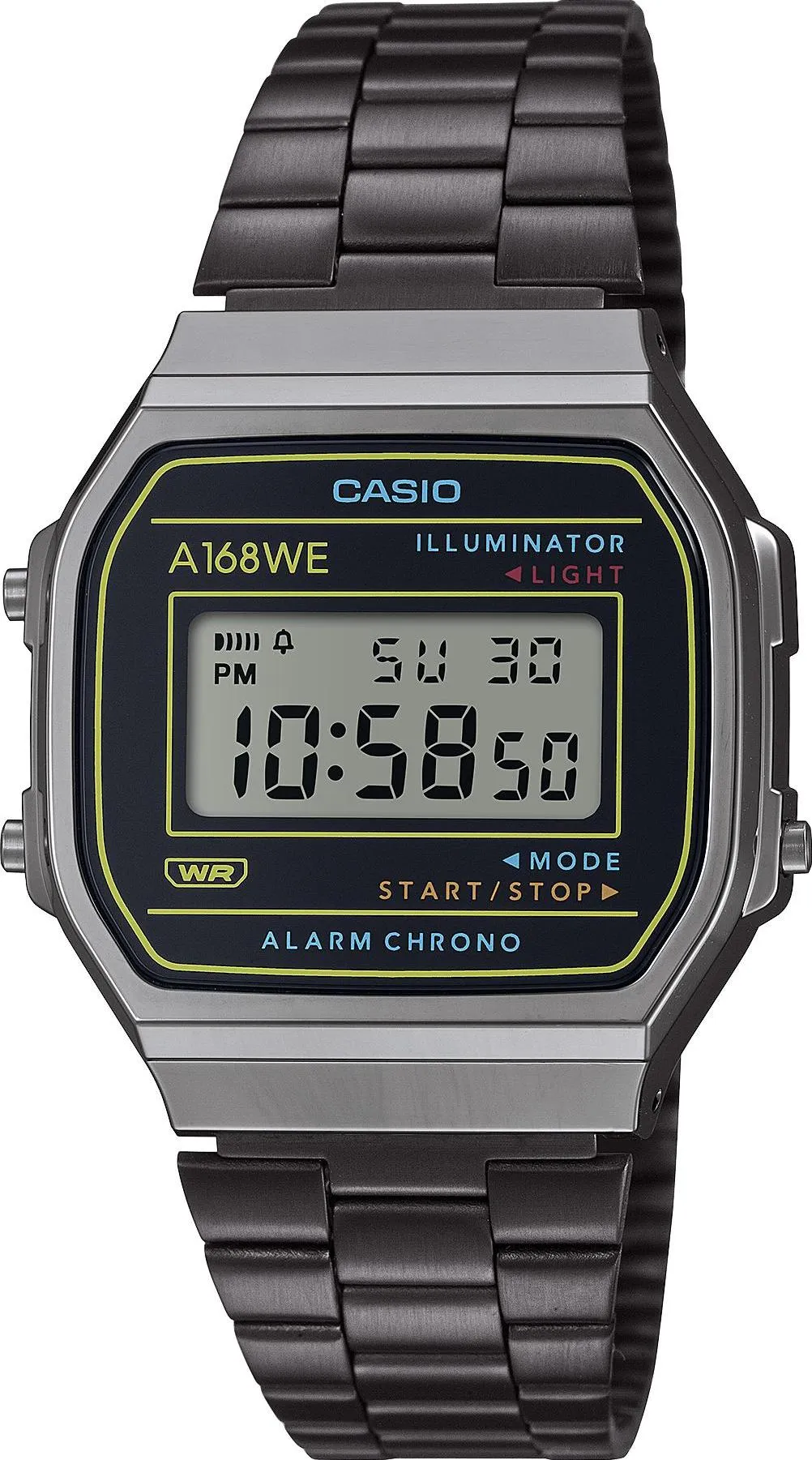 Унисекс наручные часы Casio Vintage A-168WEHB-1A. Точный кварцевый механизм с цифровой индикацей. Полимерный корпус надежно защищает часы от механических повреждений. Светодиодная подсветка. На циферблате отображается текущее число, месяц и день недели. Будильник. Таймер. Авто подсветка. Ежечасный сигнал. Автоматический календарь. 12/24-часовое отображение времени. Браслет из нержавеющей стали. Органическое стекло. Часы являются водонепроницаемыми до 3 Бар. Цвет корпуса: Серый. Цвет циферблата: Серый. Ширина (с заводной головкой): 36мм. Толщина: 10мм. Гарантия: 2 года. Другие наименования модели: A168WEHB-1ADF, A168WEHB-1A, A-168WEHB-1AD.