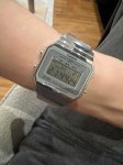 Отличные часы, очень красивый и удобный ремешок. Но я выбрала другие. Заказывала их и ещё одни (A168WA-3A). Выбрала те по визуальному эффекту и размеру циферблата (у тех побольше, удобнее). Хотя у данной модели ремешок лучше однозначно. Пришли в пупырке хорошо упакованы, коробка пластик, гарантия Casio с проставленной печатью, а не напечатанной как на гарантии от продавца.
