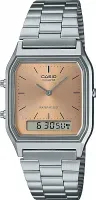 Унисекс наручные часы Casio Vintage AQ-230A-4A. Точный кварцевый механизм с аналого-цифровой индикацией. Браслет из нержавеющей стали. Отображение текущего времени в основных городах и конкретных областях по всему миру. Функция будильника. Функция хронографа. Ежечасный сигнал. После настройки автоматический календарь всегда отображает точную дату. Отображение времени возможно в 12-часовом или 24-часовом формате. Аккумулятор обеспечивает часы достаточным питанием приблизительно на 3 года. Браслет из нержавеющей стали. Полимерный ремешок. Натуральный полимерный материал является идеальным для изготовления ремешка благодаря своей чрезвычайной прочности и гибкости. Органическое стекло. На циферблате отображается текущее число месяца. Часы являются водонепроницаемыми до 3 Бар. Цвет циферблата: Серебристый. Цвет корпуса: Оранжевый. Светодиодная подсветка. Высота (с ушками): 39 мм. Толщина: 8 мм. Гарантия: 2 года.