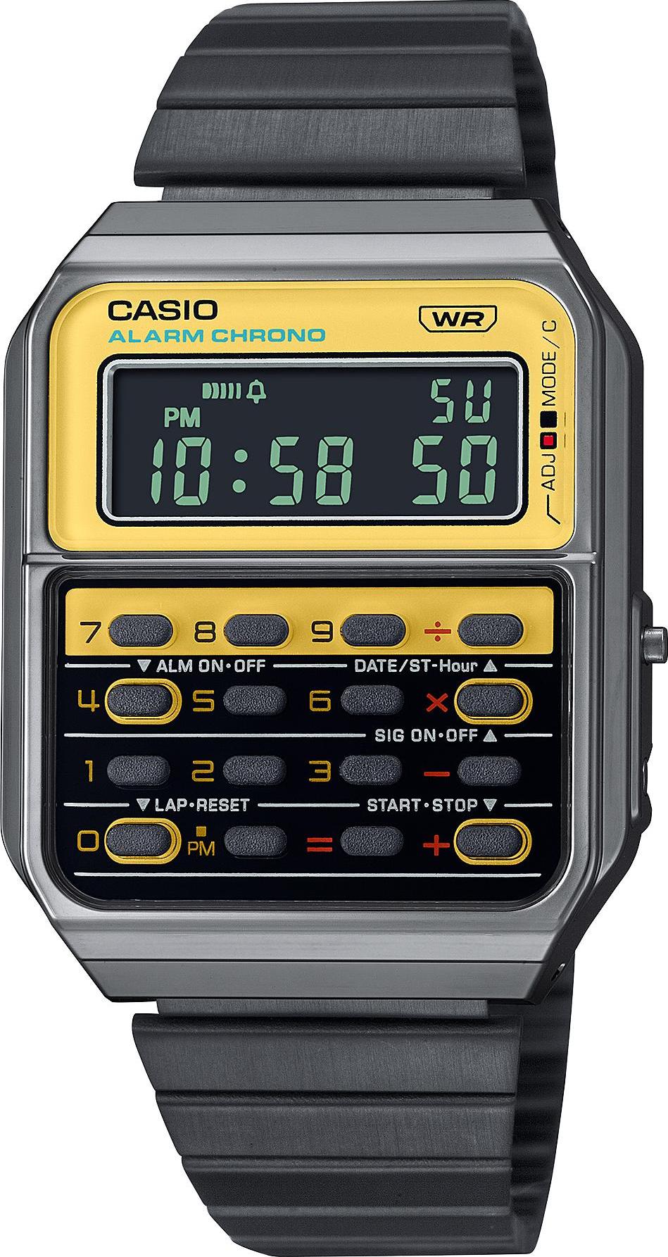 Мужские наручные часы Casio Vintage CA-500WEGG-9B. Точный кварцевый механизм с цифровой индикацей. Браслет из нержавеющей стали. Отображение текущего времени в основных городах и конкретных областях по всему миру. Функция будильника. Функция хронографа. Функция таймера. Таймеры обратного отсчета напомнят Вам о текущих или особенных событиях, издав звуковой сигнал в установленное время. После настройки автоматический календарь всегда отображает точную дату. Отображение времени возможно в 12-часовом или 24-часовом формате. Функция калькулятора. 8-разрядный калькулятор может складывать, вычитать, умножать и делить. Полимерный ремешок. Натуральный полимерный материал является идеальным для изготовления ремешка благодаря своей чрезвычайной прочности и гибкости. Органическое стекло. На циферблате отображается текущее число, месяц и день недели. Часы являются водонепроницаемыми до 3 Бар. Цвет циферблата: Серебристый. Цвет корпуса: Желтый. Светодиодная подсветка. Высота (с ушками): 34 мм. Толщина: 8 мм. Гарантия: 2 года.