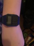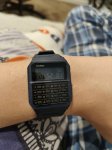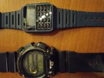 Электронные наручные часы с клавиатурой калькулятора и другими функциями. Корпус пластиковый, ремешок резиновый.
