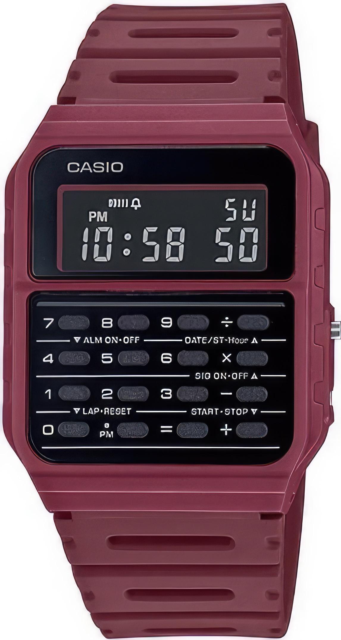 Электронные наручные часы с клавиатурой калькулятора и другими функциями. Корпус пластиковый, ремешок резиновый.