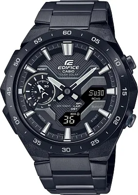 Мужские наручные часы Casio Edifice ECB-2200RC-1A3. Точный кварцевый механизм с аналого-цифровой индикацией. Браслет из нержавеющей стали. Отображение текущего времени в основных городах и конкретных областях по всему миру. Функция будильника. Функция Bluetooth позволяет удобно отображать все метрики с часов на экране смартфона, а также выводить на часы уведомления о входящих звонках, сообщениях и имейлах. Солнечная батарейка. Солнечная подзаряжающаяся батарейка обеспечивает питание часов для работы. Функция таймера. Таймеры обратного отсчета напомнят Вам о текущих или особенных событиях, издав звуковой сигнал в установленное время. Для подсветки дисплея используется светодиод, а так же имеет функцию автоматического включения подсветки, если Вы наклоните часы к своему лицу. Ежечасный сигнал. Отображение времени возможно в 12-часовом или 24-часовом формате. Браслет из нержавеющей стали. Прочное, устойчивое к царапинам минеральное стекло защищает часы от повреждений. На циферблате отображается текущее число месяца и день недели. Часы являются водонепроницаемыми до 3 Бар. Цвет циферблата: Черный. Цвет корпуса: Зеленый. Цвет корпуса: Черный. Светодиодная подсветка. Толщина: 11 мм. Гарантия: 2 года.