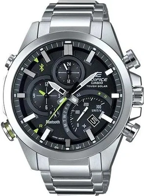 <b>Мужские наручные часы Casio Edifice ECB-40PB-1A</b>. Точный кварцевый механизм с аналого-цифровой индикацией. Корпус изготовлен из высококачественной нержавеющей стали 316L с высокими антикоррозийными свойствами. На циферблате отображается текущее число, месяц и день недели. Функция Bluetooth позволяет удобно отображать все метрики с часов на экране смартфона, а также выводить на часы уведомления о входящих звонках, сообщениях и имейлах. Функция хронографа. Функция таймера. Таймеры обратного отсчета напомнят Вам о текущих или особенных событиях, издав звуковой сигнал в установленное время. Функция будильника. Аккумулятор обеспечивает часы достаточным питанием приблизительно на 2 года. Отображение текущего времени в основных городах и конкретных областях по всему миру. После настройки автоматический календарь всегда отображает точную дату. Отображение времени возможно в 12-часовом или 24-часовом формате. Полимерный ремешок. Натуральный полимерный материал является идеальным для изготовления ремешка благодаря своей чрезвычайной прочности и гибкости. Прочное, устойчивое к царапинам минеральное стекло защищает часы от повреждений. Часы являются водонепроницаемыми до 10 Бар. Цвет корпуса: Черный. Цвет циферблата: Черный. Ширина (с заводной головкой): 52мм. Толщина: 13мм. Гарантия: 2 года.
