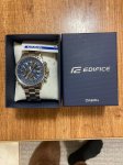 Мужские наручные часы Casio Edifice EF-527D-2A. Точный кварцевый механизм с аналоговой индикацией. Корпус изготовлен из высококачественной нержавеющей стали 316L с высокими антикоррозийными свойствами. На стрелки и отметки нанесен светонакопительный состав, благодаря этому считывать информацию с циферблата возможно и в темноте. На циферблате отображается текущее число месяца. Функция хронографа. Отображение времени возможно в 12-часовом или 24-часовом формате. Браслет из нержавеющей стали. Прочное, устойчивое к царапинам минеральное стекло защищает часы от повреждений. Часы являются водонепроницаемыми до 10 Бар. Цвет корпуса: Серебристый. Цвет циферблата: Синий. Ширина (с заводной головкой): 45мм. Толщина: 12мм. Гарантия: 2 года. Другие наименования модели: EF-527D-2AVEF, EF-527D-2AVUEF.