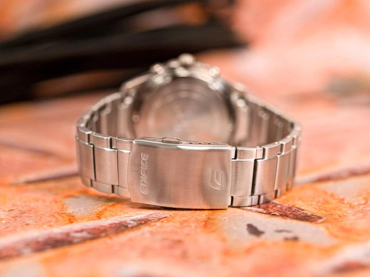 Точный кварцевый механизм хронографа. Смещенная секундная стрелка. Окошко даты. • Точность хода не хуже -10 +15 сек./в месяц. • Минеральное стекло устойчивое к возникновению царапин. • Корпус из высококачественного стального сплава 316L с высокими антикоррозийными свойствами. • Регулируемый по длине браслет из нержавеющей стали. • Водозащита до 10 АТМ. • Светонакопительный состав на стрелках и маркерах часа. Производитель: Япония.