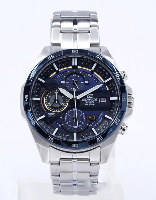 Мужские наручные часы Edifice Chronograph с современным спортивным дизайном. Корпус выполнен из нерж. стали, кожаный ремешок. Безель с IP-покрытием и разметкой. Минеральное стекло. Японский кварцевый механизм с функцией хронографа.