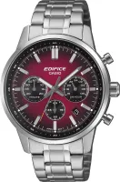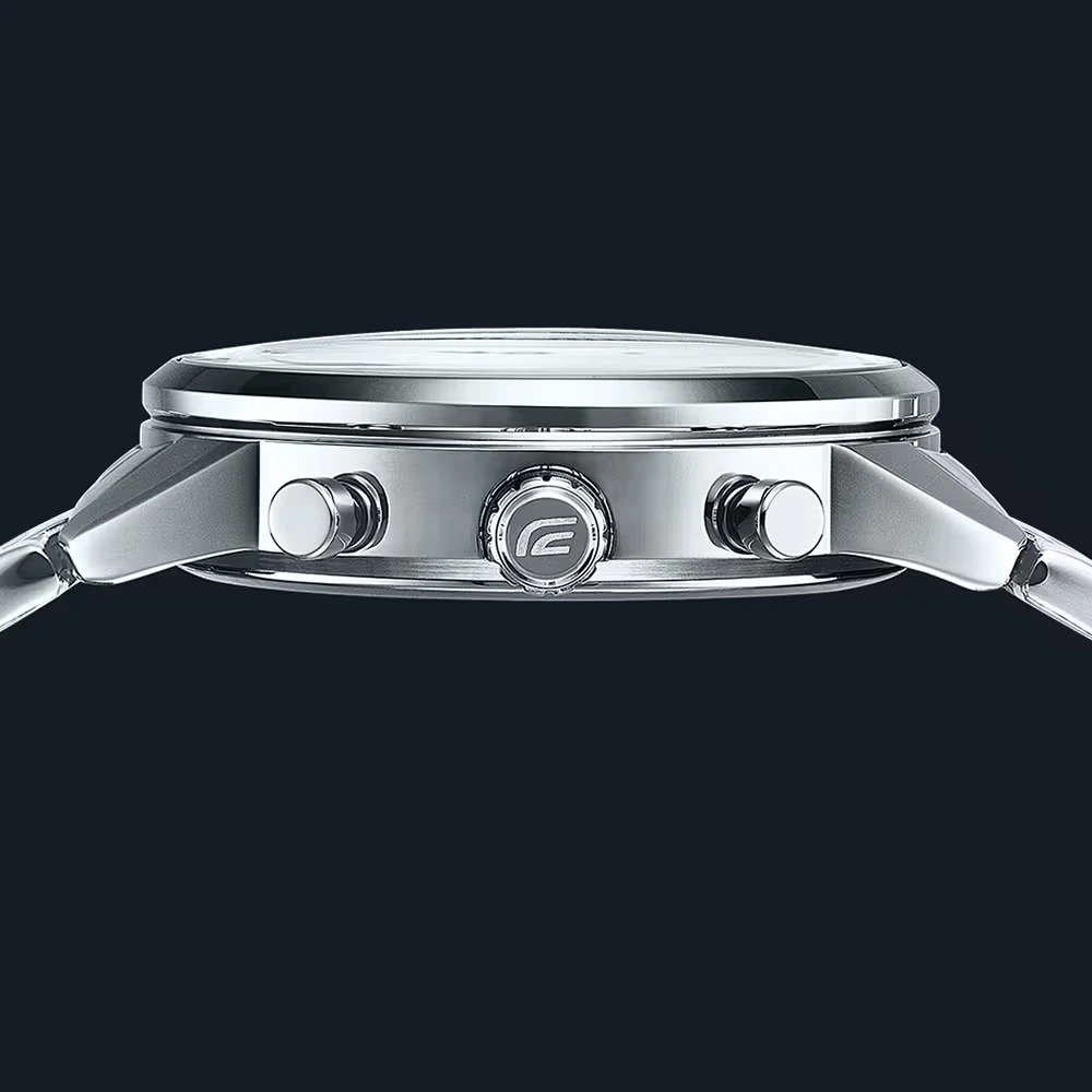 Релиз 2026 года EFR-575 — сферическое стекло и эстетика спорткара! Мужской кварцевый хронограф Casio EFR-575D-4A. Центральные часовая, минутная и секундная стрелки. Апертура даты между 4 и 5 часами. 12/24х часовой формат времени. Секундомер. Бордовый градиентный циферблат. Люминесцентное покрытие на стрелках и часовых метках. Круглый корпус выполнен из нержавеющей стали. Стальной браслет, раскладывающаяся застежка. Сферическое минеральное стекло, устойчивое к мелким механическим повреждениям. Водостойкость WR 100.