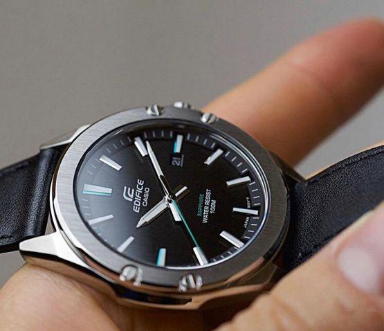 Компания Casio представляет новинку в серии Slim - модель EFR-S107.<br>Часы обладают минималистичным дизайном, а подложка циферблата выполнена в текстуре, похожей на металлическую поверхность. Циферблат оборудован окошком даты у отметки "3", часовые метки "3","6","9","12" и секундная стрелка декорированы бирюзовыми акцентами. Парные винты служат усиливающим звеном для шлифованого безеля и корпуса.<br>Новинки выполнены с кожаным ремешком (EFR-S107L-1A) и на стальном браслете (EFR-S107D-1A). Циферблат укрыт сапфировым стеклом, обладающим стойкостью к появлению царапин, прозрачностью и антибликовостью.<br>Часы имеют водонепроницаемость до 10 Бар.