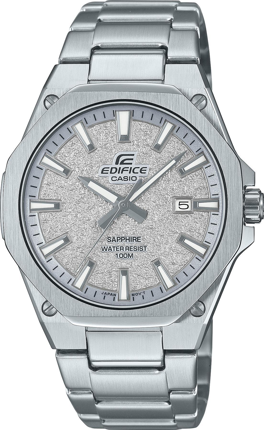Представляем часы EDIFICE EFR-S108 с более тонким профилем для большего комфорта. Благодаря тонкому корпусу толщиной 7,8 мм, плоскому восьмиугольному безелю и классическому аналоговому циферблату с тремя стрелками, эти часы создают спортивный и роскошный образ. Модель EFR-S108DE подчеркивает изысканность благодаря уникальному текстурированному циферблату.