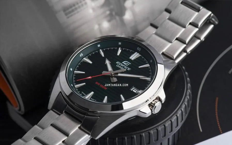 Мужские наручные часы Casio Edifice EFV-140D-3A. Точный кварцевый механизм с аналоговой индикацией. Корпус изготовлен из высококачественной нержавеющей стали 316L с высокими антикоррозийными свойствами. На стрелки и отметки нанесен светонакопительный состав, благодаря этому считывать информацию с циферблата возможно и в темноте. На циферблате отображается текущее число месяца. Аккумулятор обеспечивает часы достаточным питанием приблизительно на 3 года. Браслет из нержавеющей стали. Прочное, устойчивое к царапинам минеральное стекло защищает часы от повреждений. Часы являются водонепроницаемыми до 10 Бар. Цвет корпуса: Серебристый. Цвет циферблата: Зеленый. Ширина (с заводной головкой): 49мм. Толщина: 11мм. Гарантия: 2 года. Другие наименования модели: EFV-140D-3AVUDF.