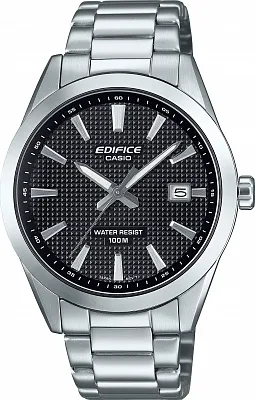 Мужские наручные часы Casio Edifice EFV-140L-7A. Точный кварцевый механизм с аналоговой индикацией. Корпус изготовлен из высококачественной нержавеющей стали 316L с высокими антикоррозийными свойствами. На стрелки и отметки нанесен светонакопительный состав, благодаря этому считывать информацию с циферблата возможно и в темноте. На циферблате отображается текущее число месяца. Аккумулятор обеспечивает часы достаточным питанием приблизительно на 3 года. Ремешок изготовлен из кожи. Прочное, устойчивое к царапинам минеральное стекло защищает часы от повреждений. Часы являются водонепроницаемыми до 10 Бар. Цвет корпуса: Серебристый. Цвет циферблата: Серый. Ширина (с заводной головкой): 49мм. Толщина: 11мм. Гарантия: 2 года. Другие наименования модели: EFV-140L-7AVUDF.