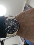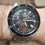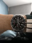 Спортивный хронограф с традиционным черным безелем с дополнительной разметкой минут. Оптимальный размер сохраняющий брутальную мужественность и практическую компактность.