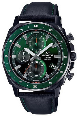 Мужские кварцевые часы из серии Edifice. Стальной круглый корпус с PVD покрытием. Минеральное стекло. Зеленый циферблат. Водозащита 100 м.